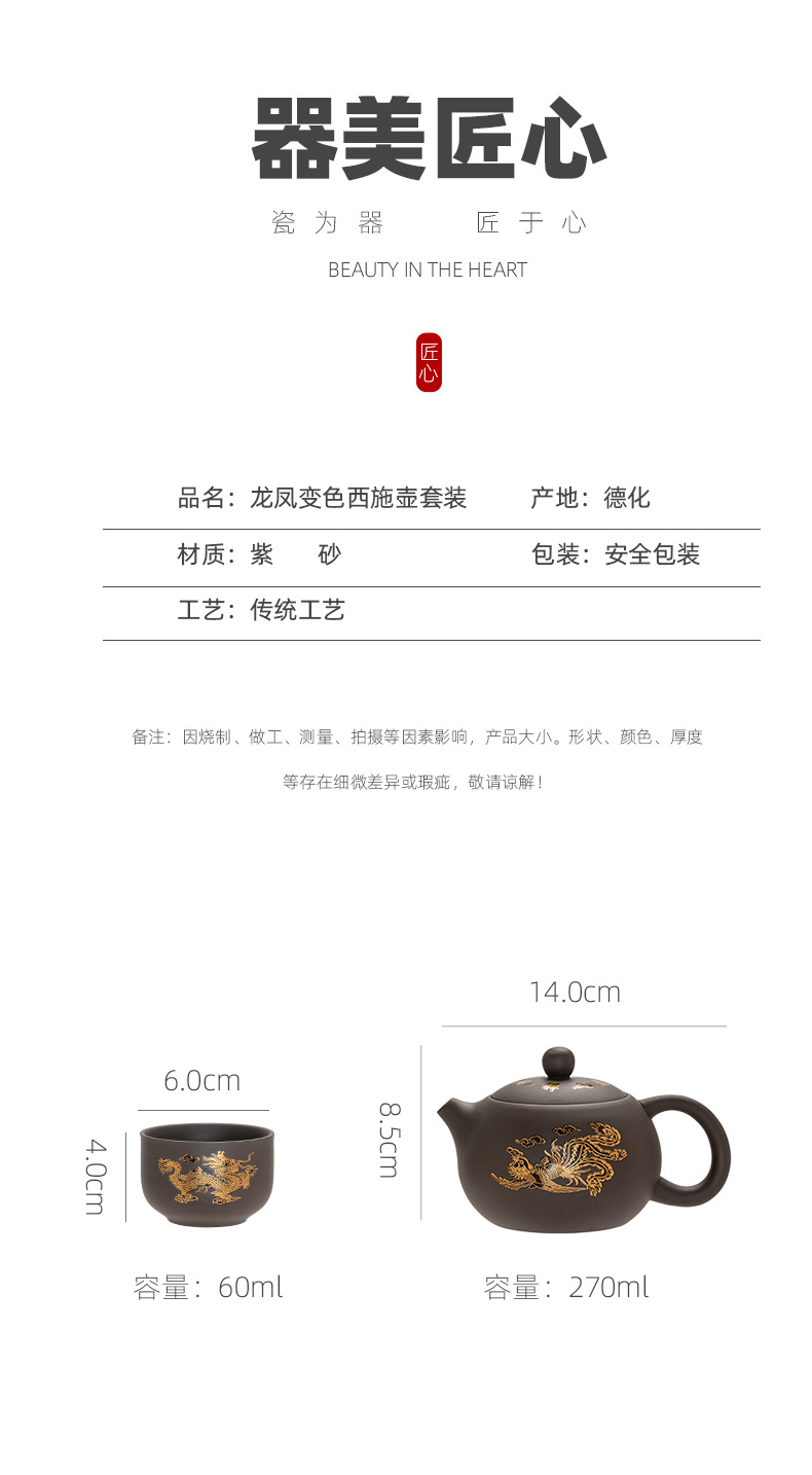 color-changing golden dragon and phoenix xi shi pot one pot four cups + bag