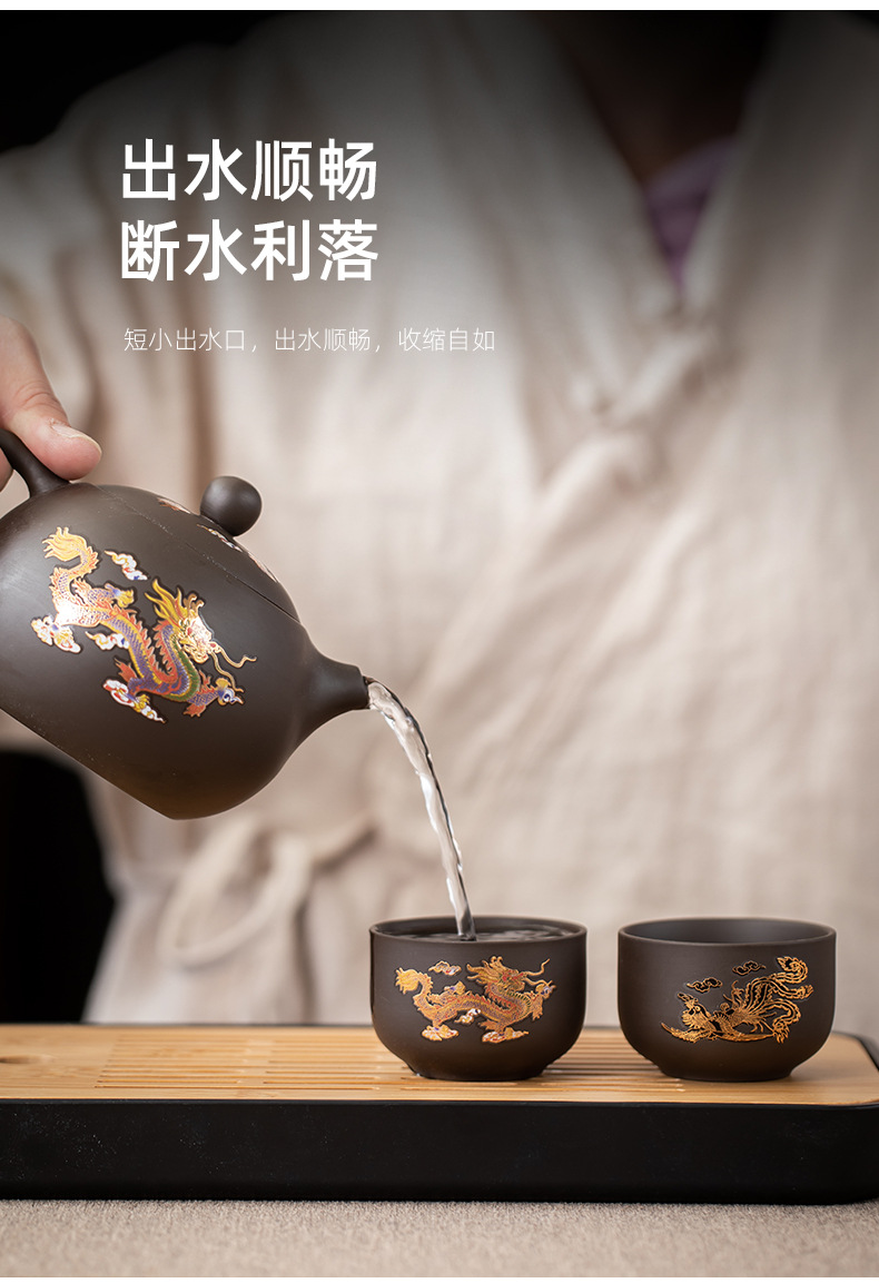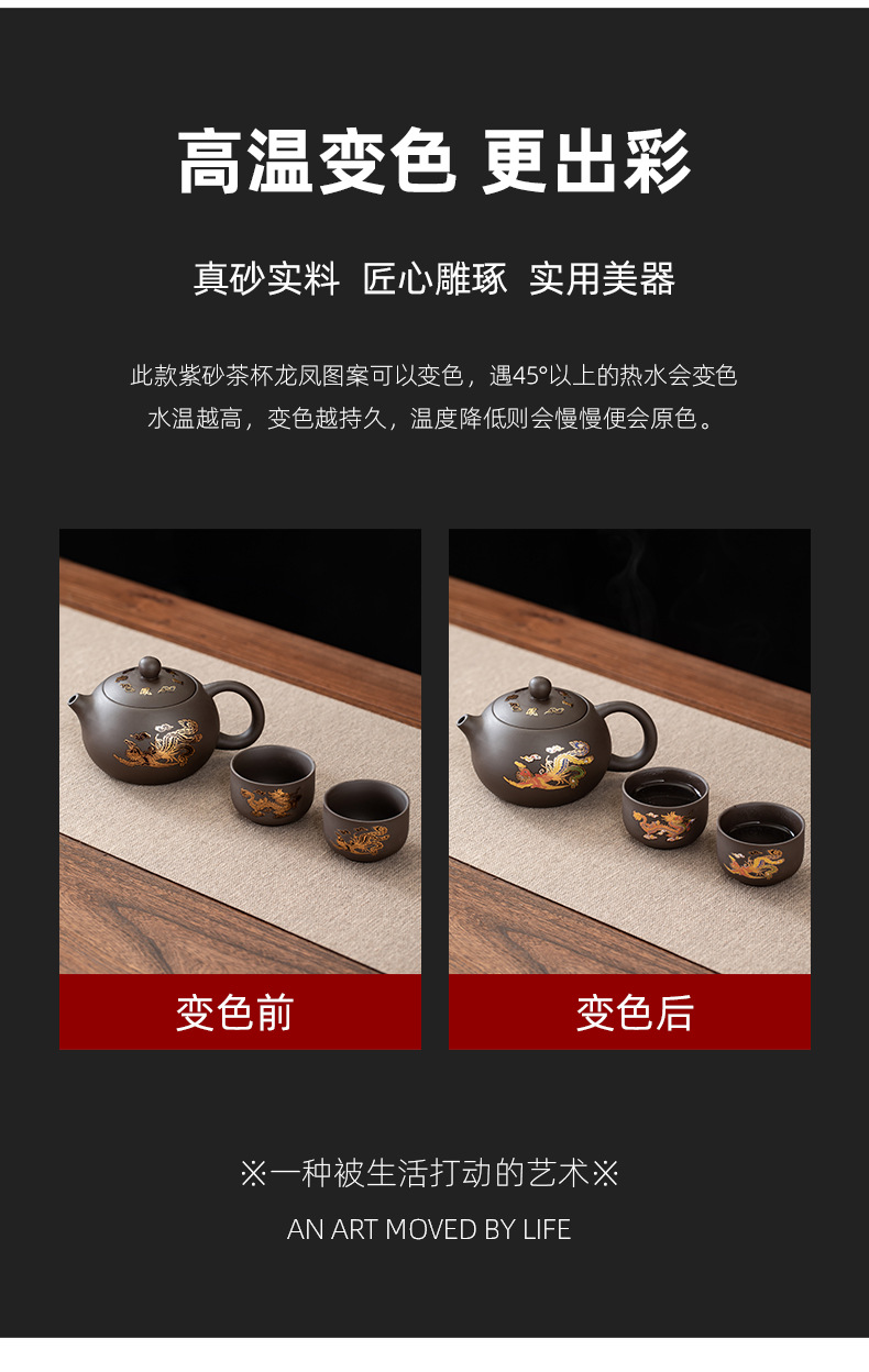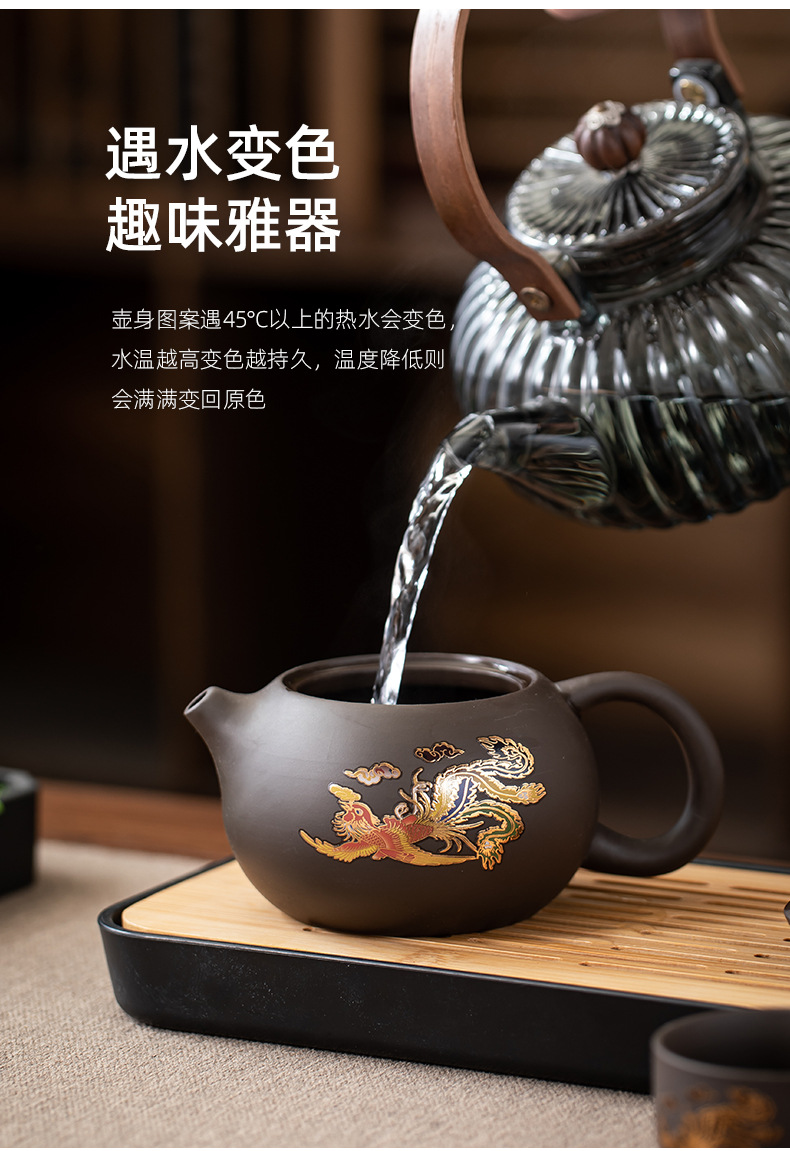 color-changing golden dragon and phoenix xi shi pot one pot four cups