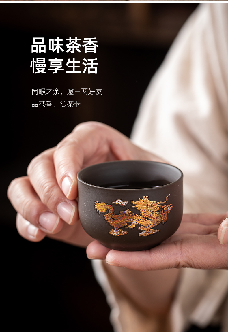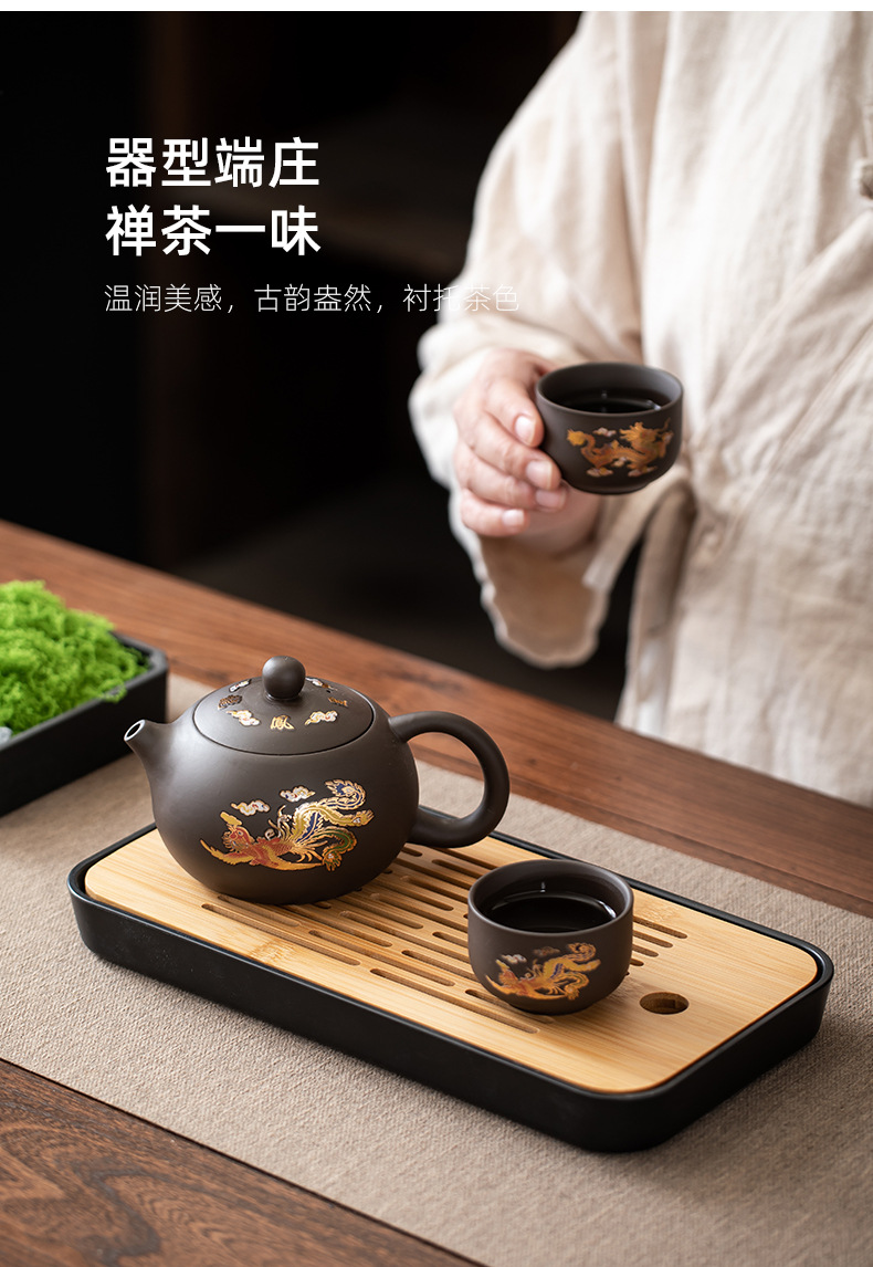 color-changing golden dragon and phoenix xi shi pot one pot two cups plus plate
