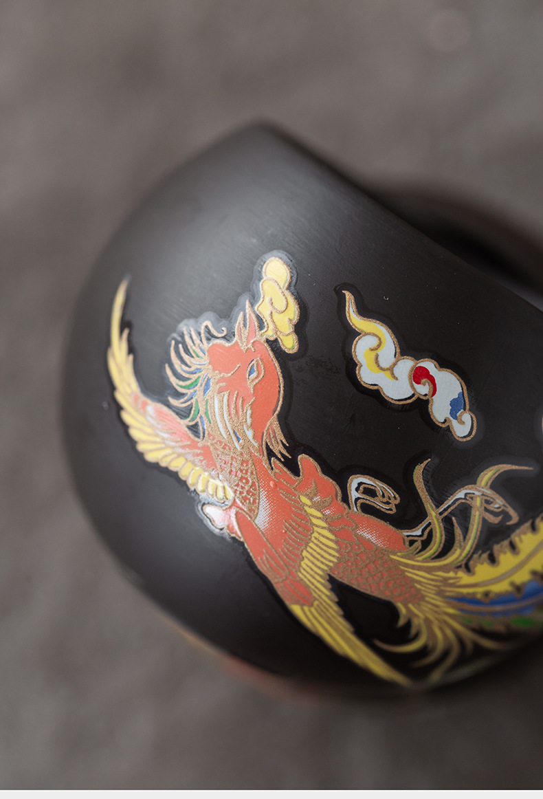 500ml color-changing dragon and phoenix purple clay pot