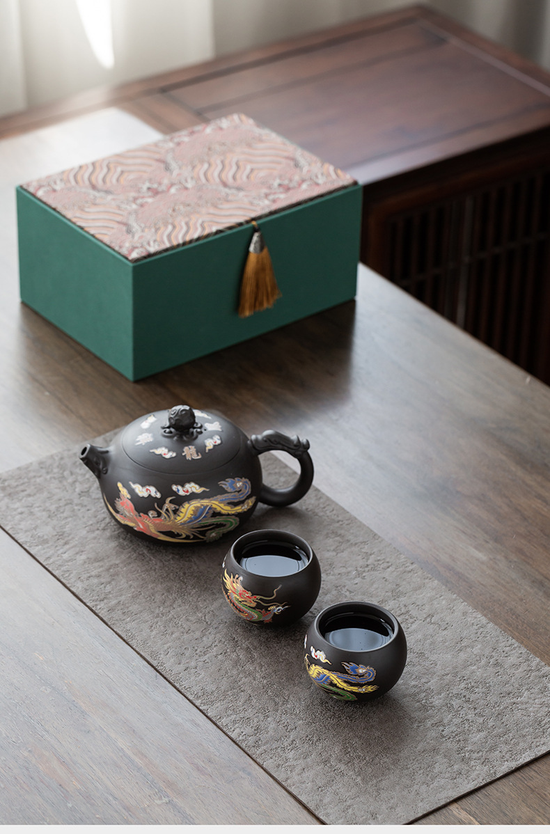 500ml color-changing dragon and phoenix purple clay pot + dragon-phoenix cup · gift box