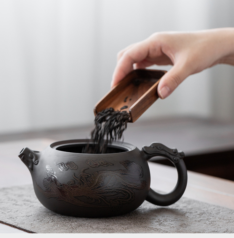 500ml color-changing dragon and phoenix purple clay pot · gift box