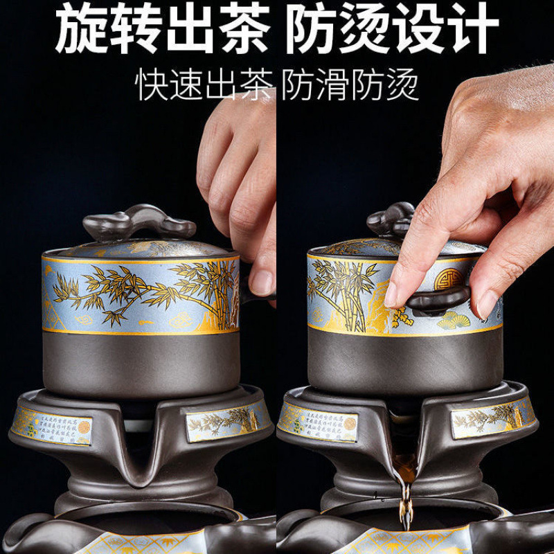 purple sand bamboo rhyme automatic + six gentlemen tea basin tea pot tea tray