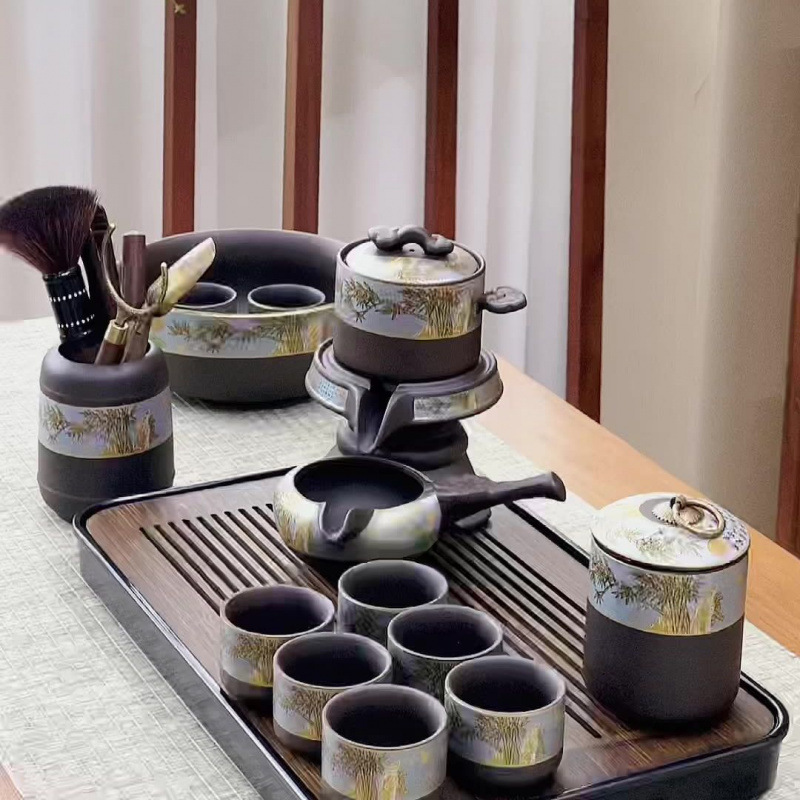 purple sand bamboo rhyme automatic (6 cups) + qianchuan tea tray