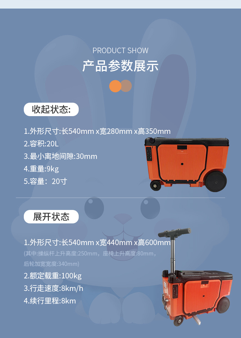 pipi rabbit electric luggage suitcase smart riding boarding machine trolley case 20-inch luggage for men and women