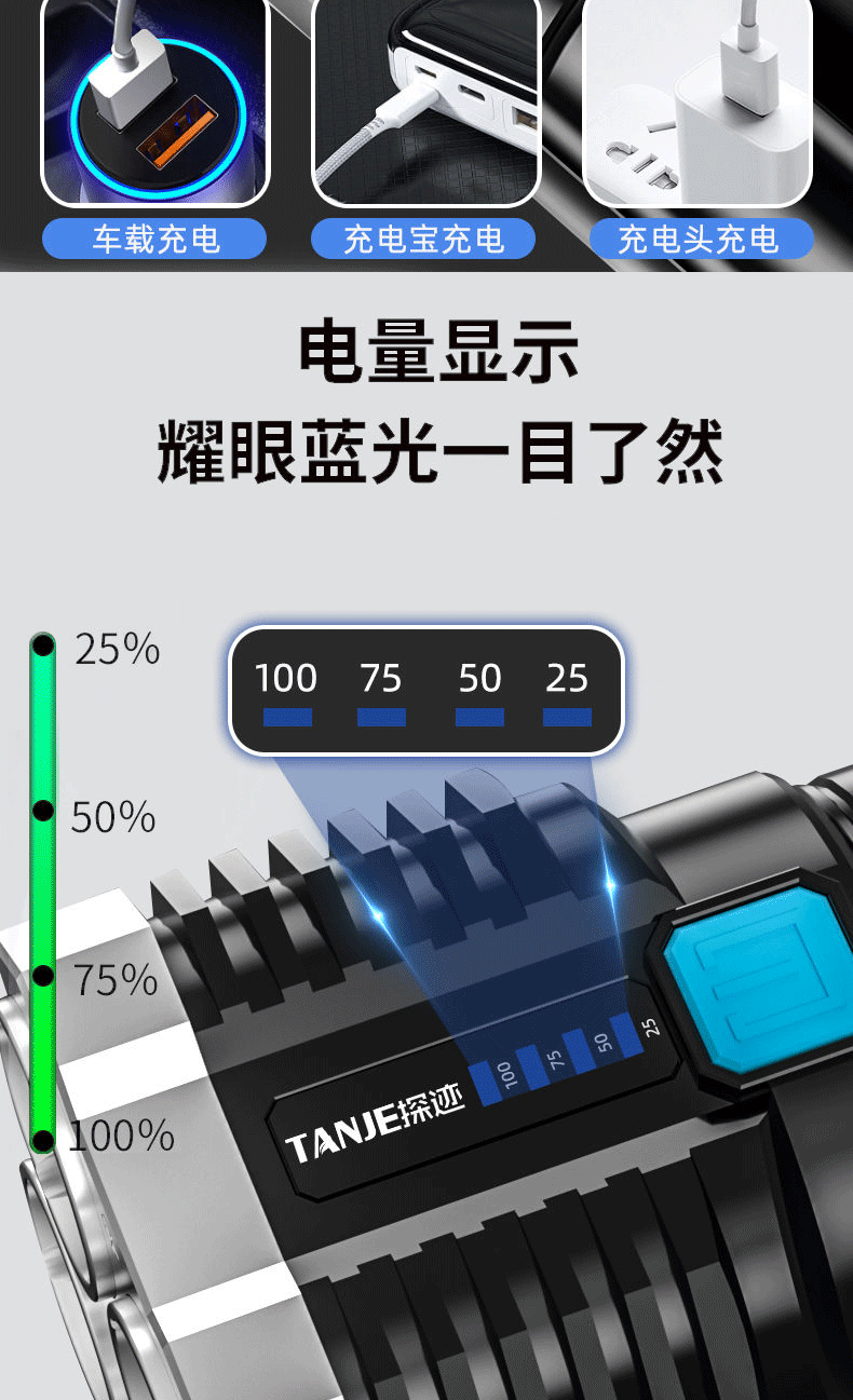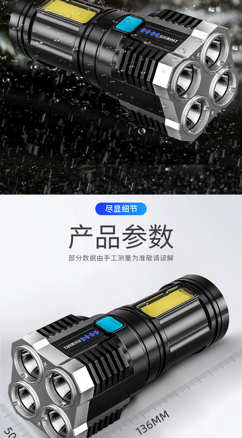four-head flashlight + usb cable + color box