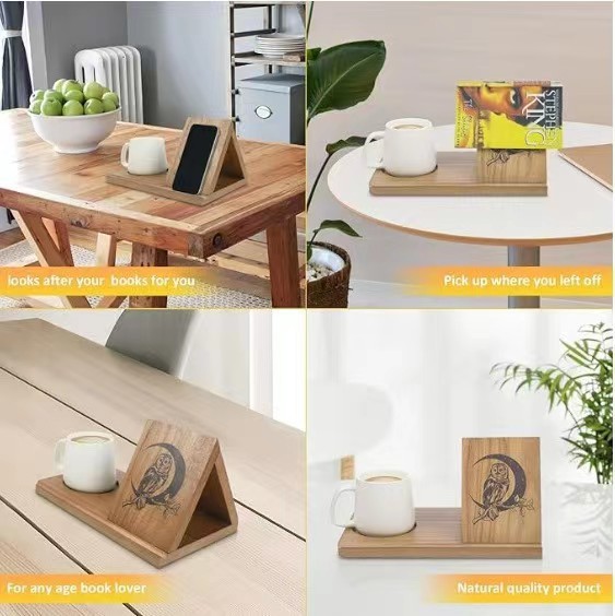 creative wooden triangle desktop reading bookshelf solid wood coffee shop mug tray decoration solid wood bookshelf