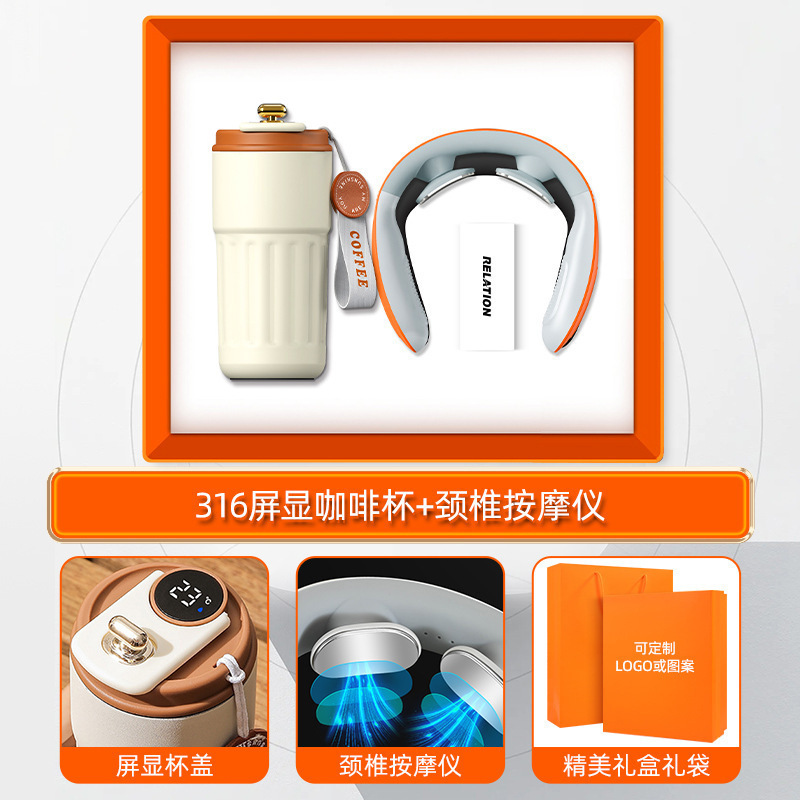 [orange two-piece set] coffee cup + cervical spine massage instrument rechargeable