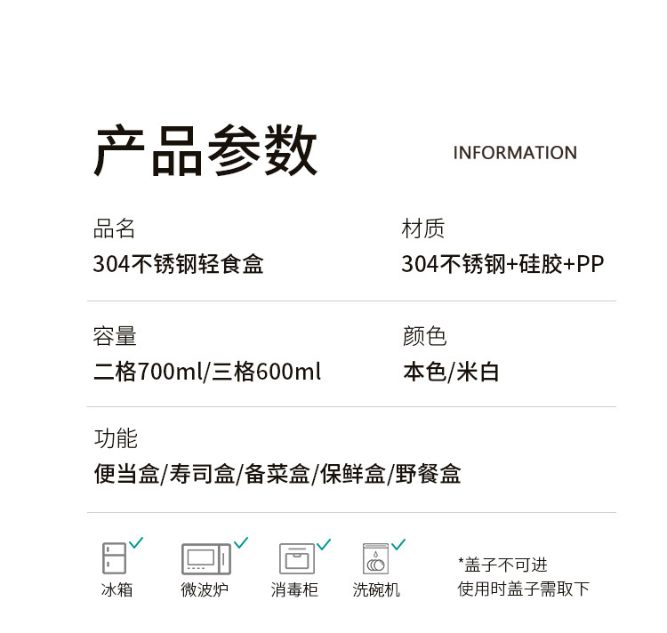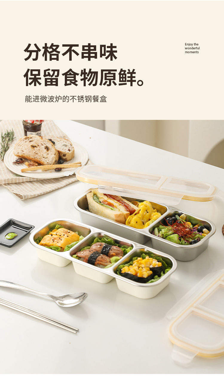 light food box steel color [quantitative three grids] 600ml