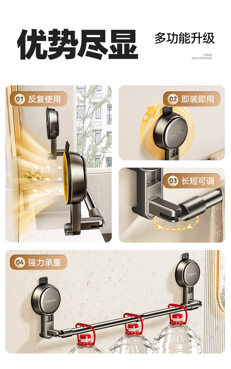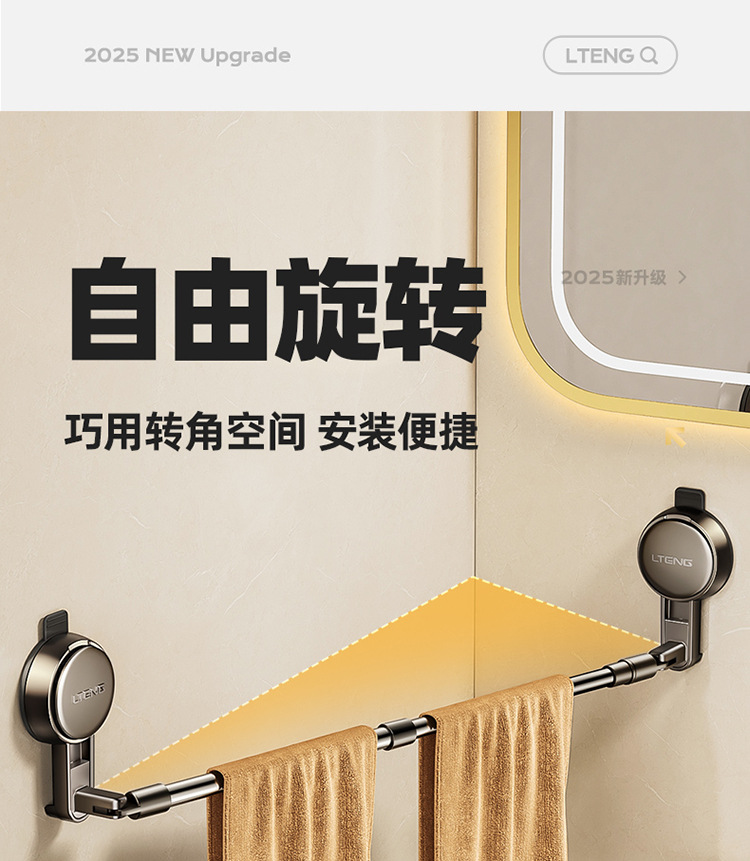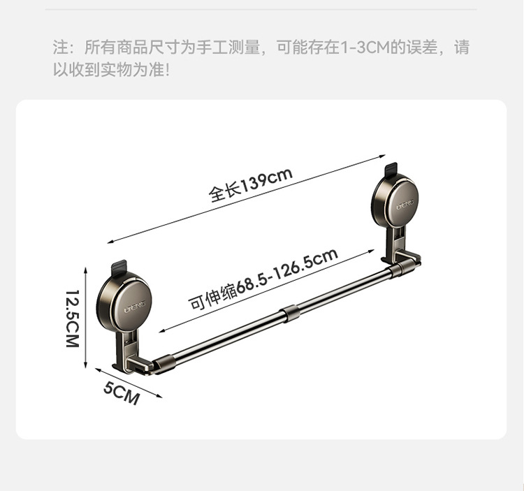 retractable rotating suction cup towel rack without hook (retractable 68.5-126.5cm)