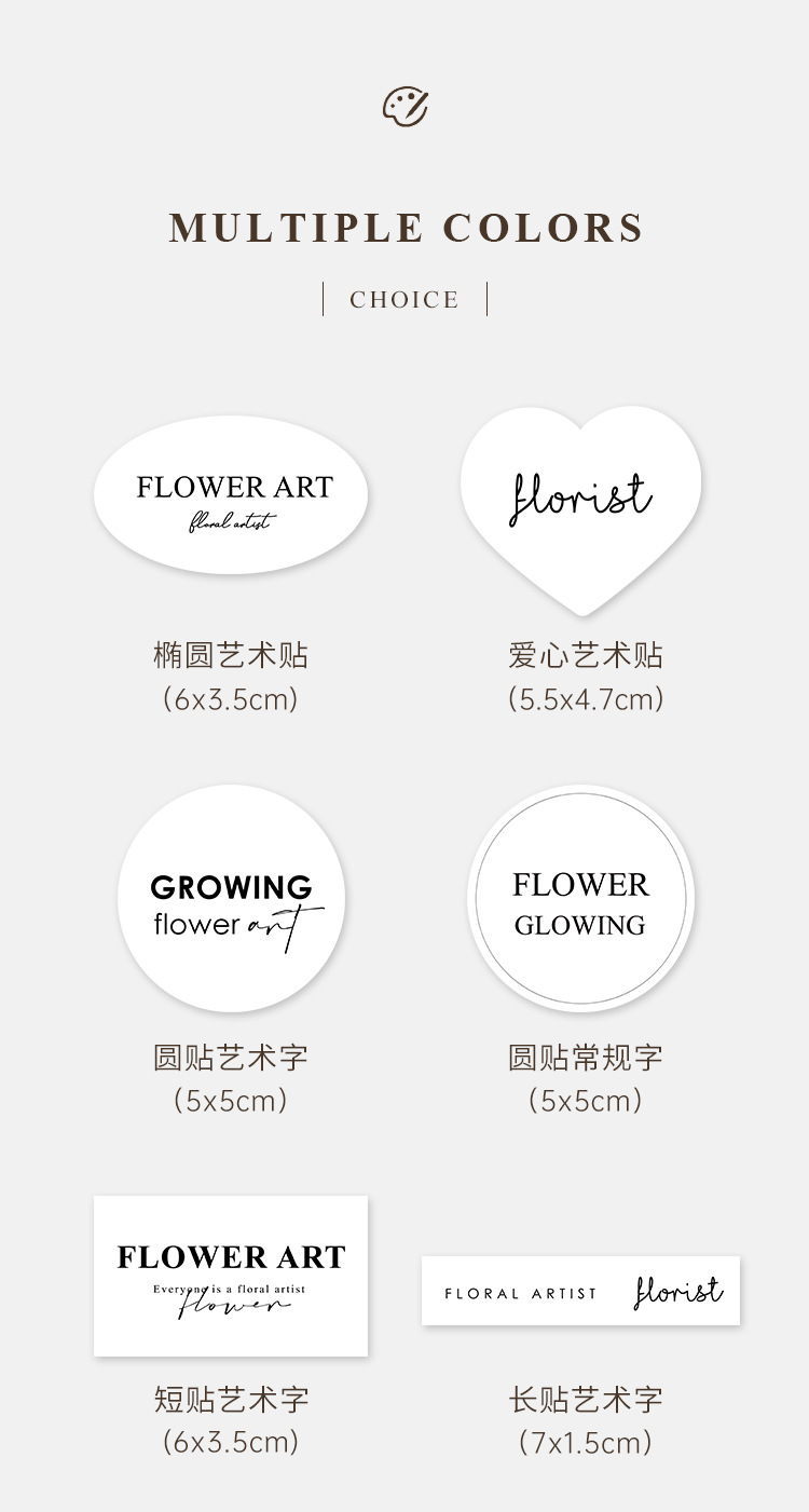 round sticker art word three large 60 small stickers (each small sticker 5 * 5cm); multiple sizes