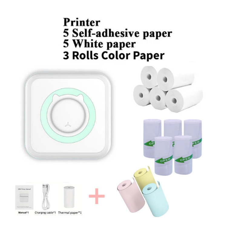 c15 blue +5 rolls thermosensitive paper +5 rolls self-adhesive thermo-sensitive paper thermosensitive paper +3 rolls colored paper +5 rolls crayon