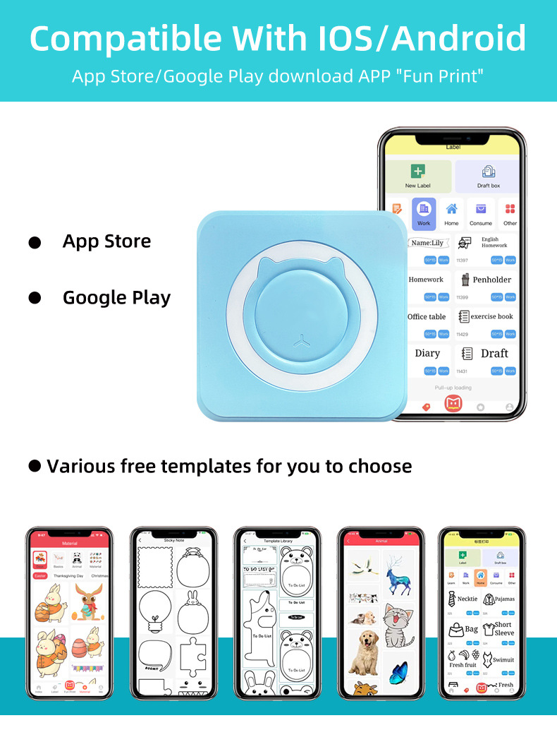 macaron blue (with a roll of printing paper)