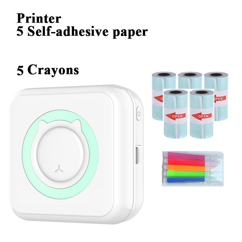 c15 blue +5 rolls thermosensitive paper +5 rolls adhesive sticker thermosensitive sticker +5 pieces crayon