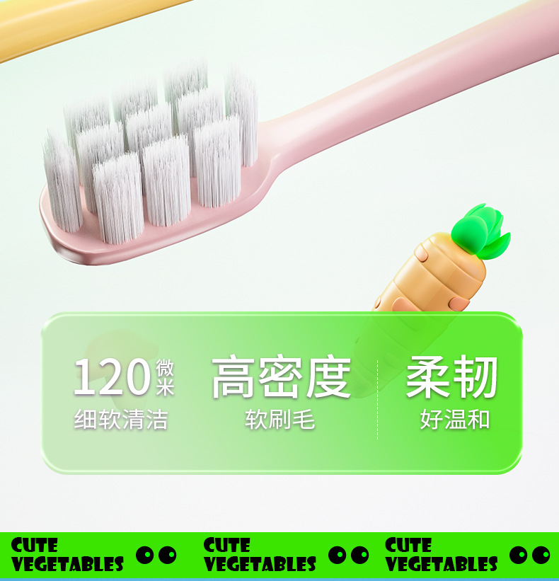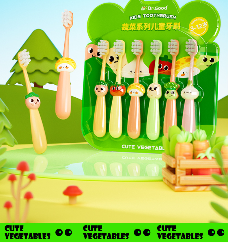 jianpai children's soft-bristle toothbrush card 3~8 years old children's cartoon vegetable toothbrush soft hair gum care 6 pcs factory wholesale