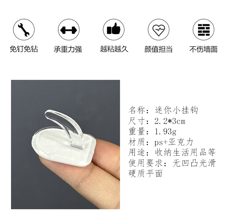 seamless acrylic stickers transparent hook strong plastic sticky hook bathroom punch-free viscose small horn hook
