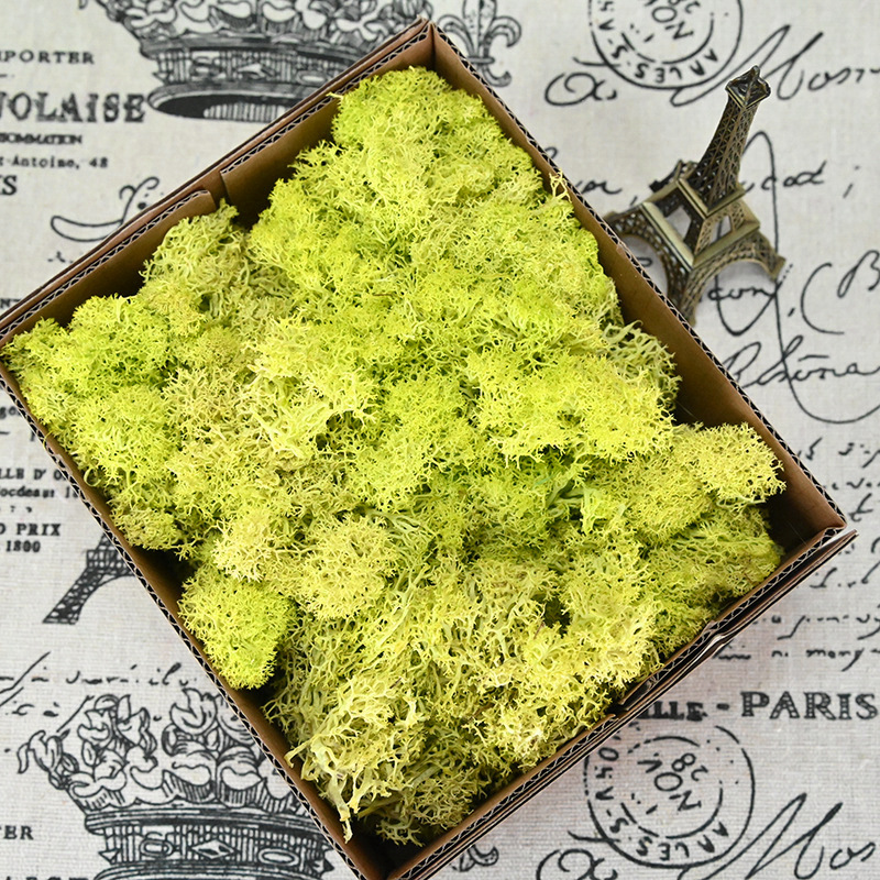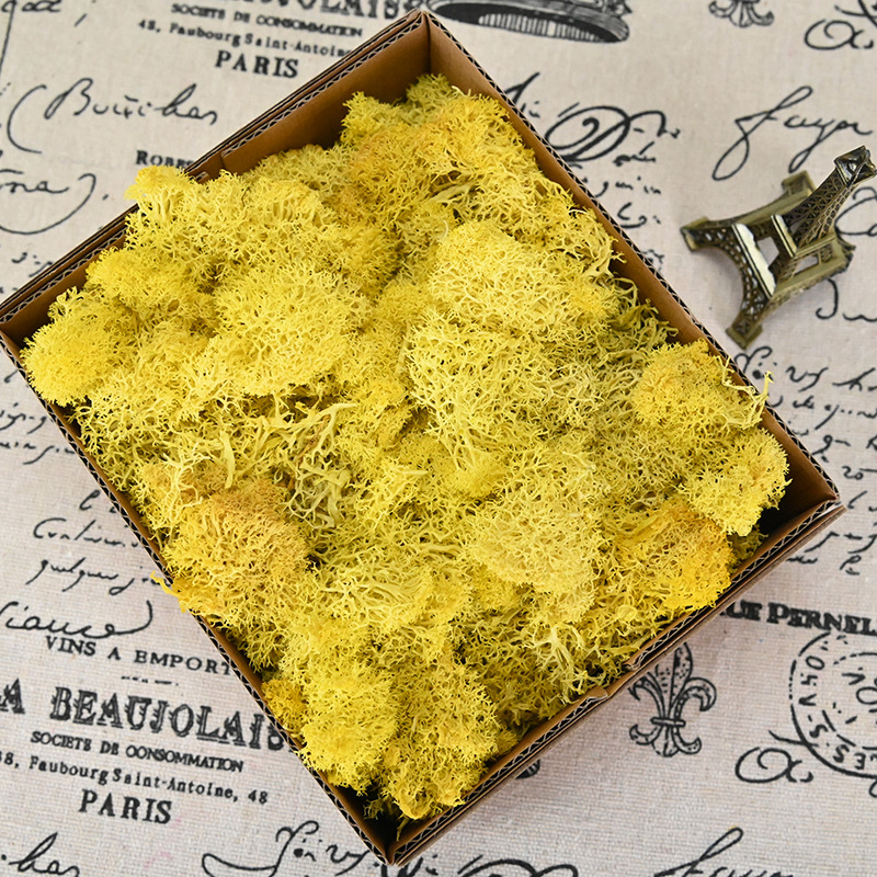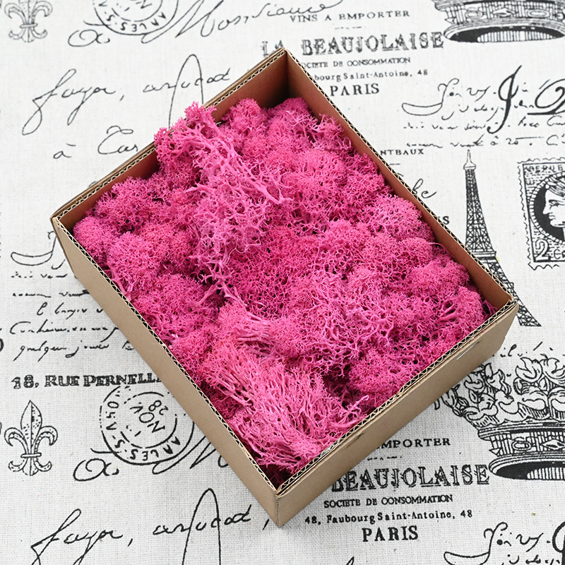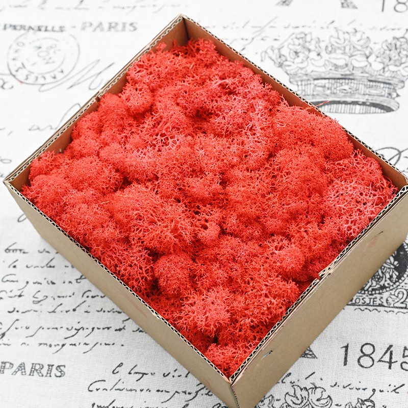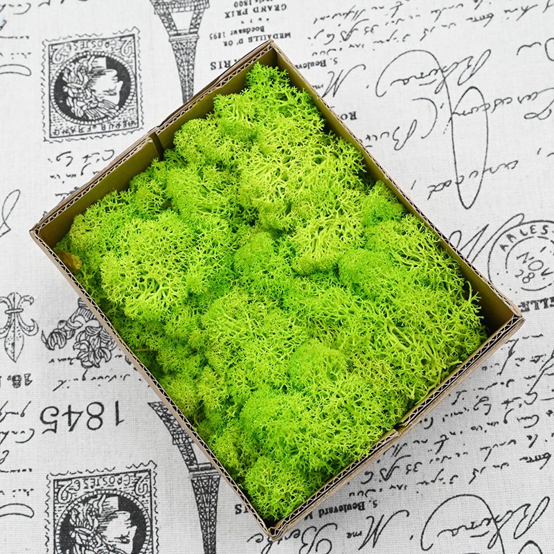Our moss is mainly used to make moss walls, so it will be quite wet and easy to stain your hands. The dyes for black, red, and dark green will cause more serious staining, but the moss itself will not fade. Light-colored moss may slightly turn yellow because excessive bleaching processes will make the moss very thin, which is not suitable for making moss walls. Those who are concerned should be cautious when purchasing.