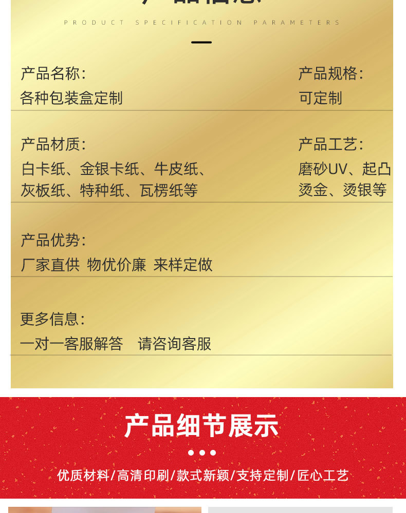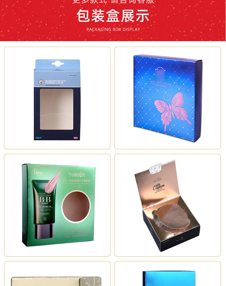 | various color box packaging boxes; customized size; gold and silver card paper | CN¥ 0.0 | 19937884 piece available |