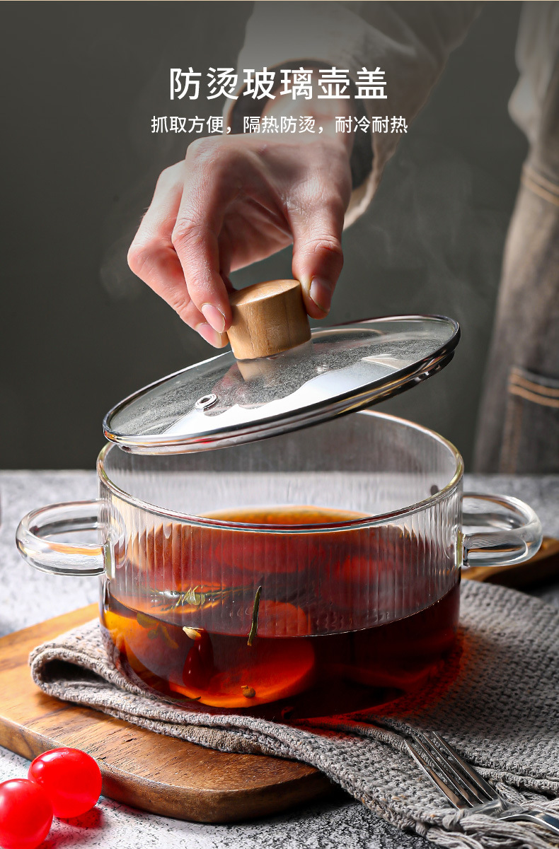 wood grain top cover small soup pot