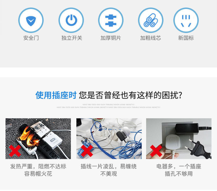 three-socket 12-hole pure copper 3 m