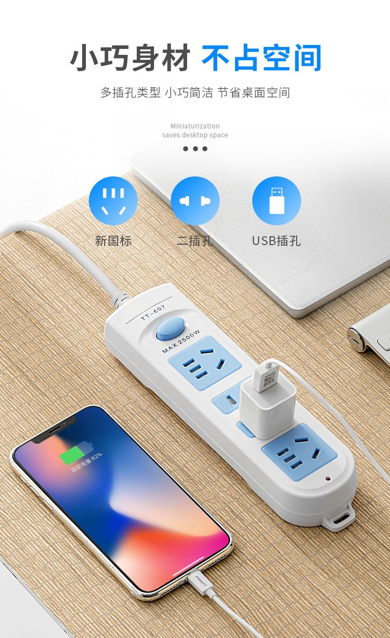 two-socket 7-hole pure copper 1.8 m