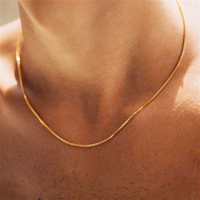 popular classic choker necklace electroplated 18k gold stainless steel necklace square box necklace men and women