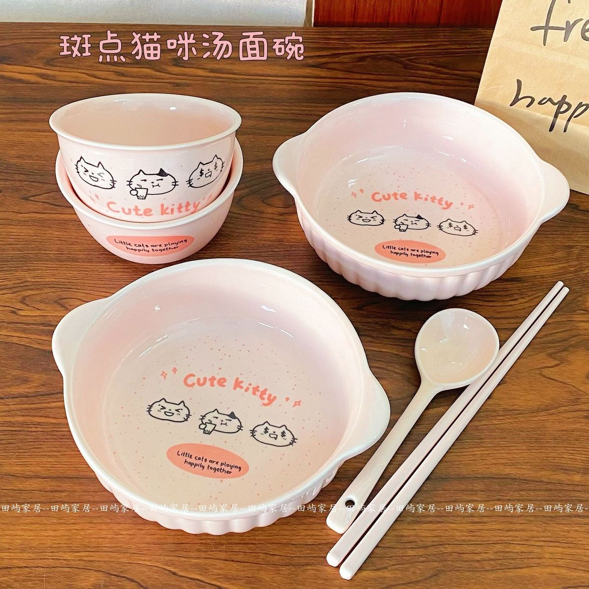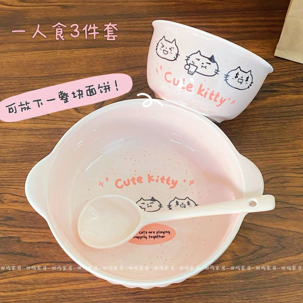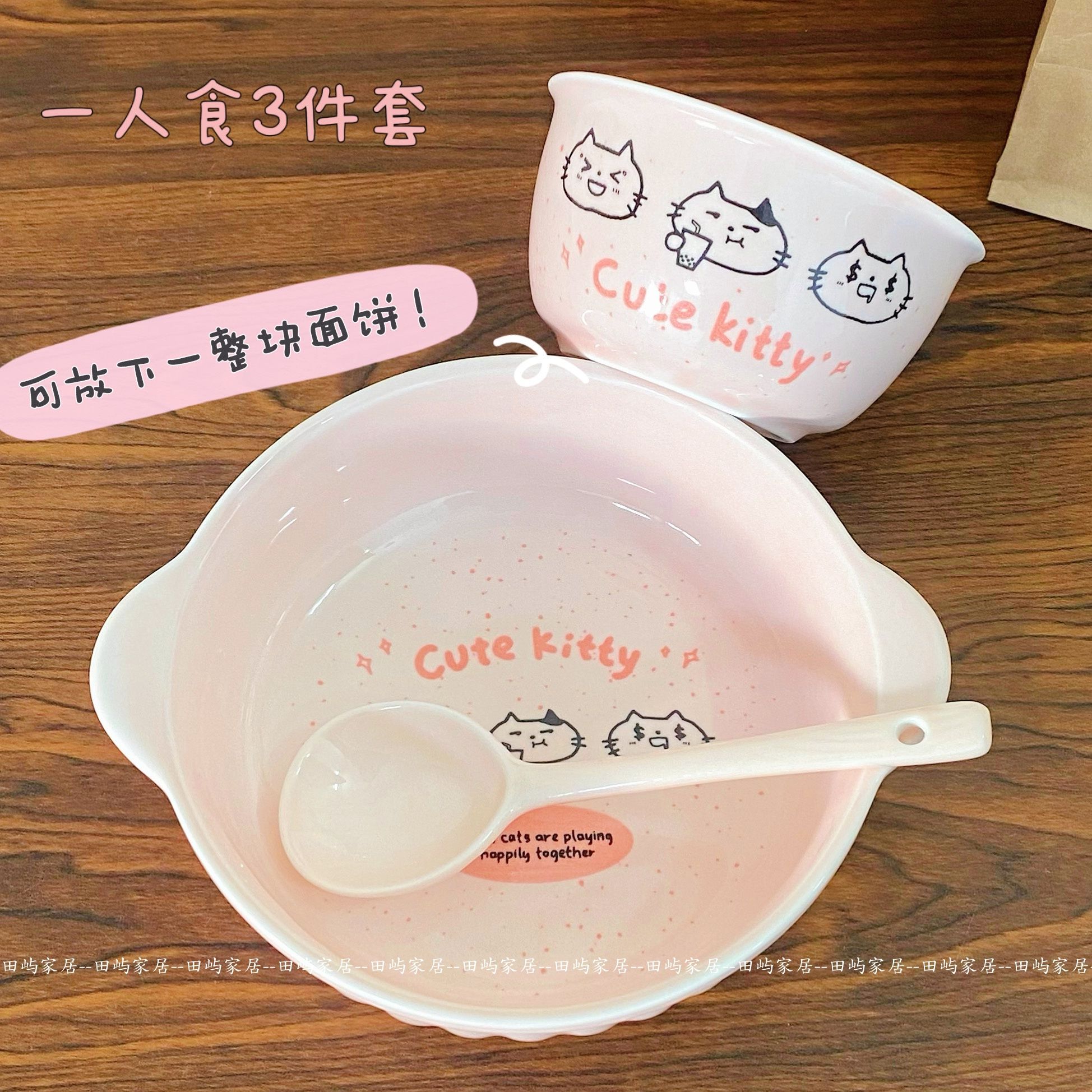 | spotted kitten [3 pieces] rice bowl + binaural noodle bowl + spoon | CN¥ 24.3 | 999999 piece available |