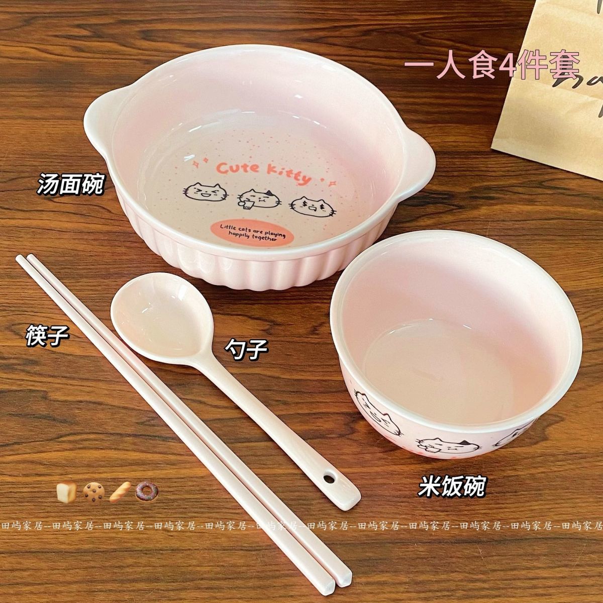 | spotted kitten [4 pieces] rice bowl + binaural noodle bowl + spoon + chopsticks | CN¥ 26.24 | 999999 piece available |