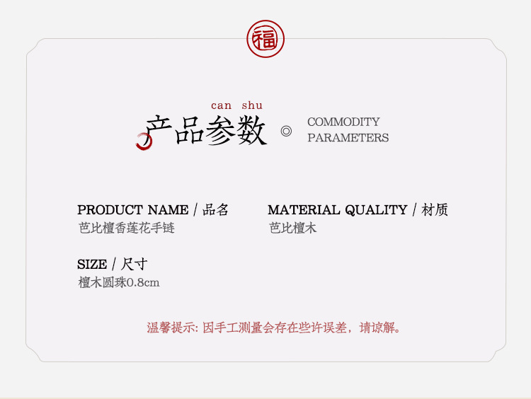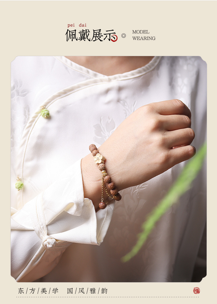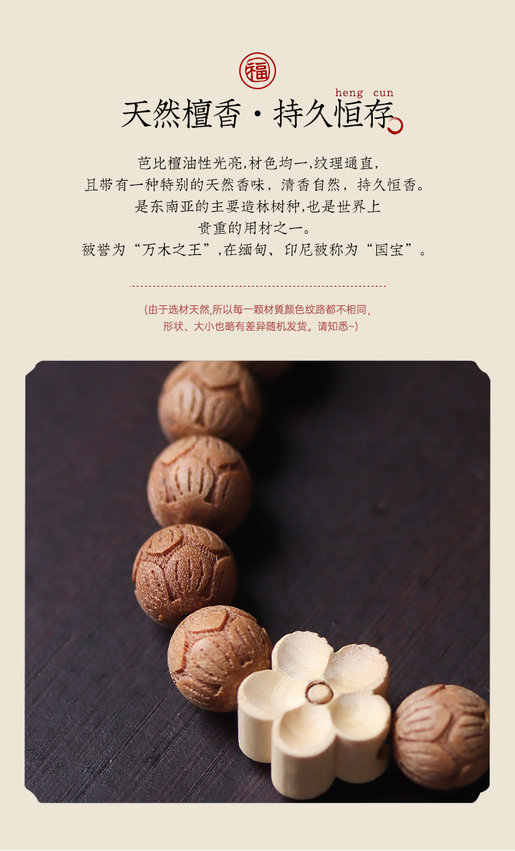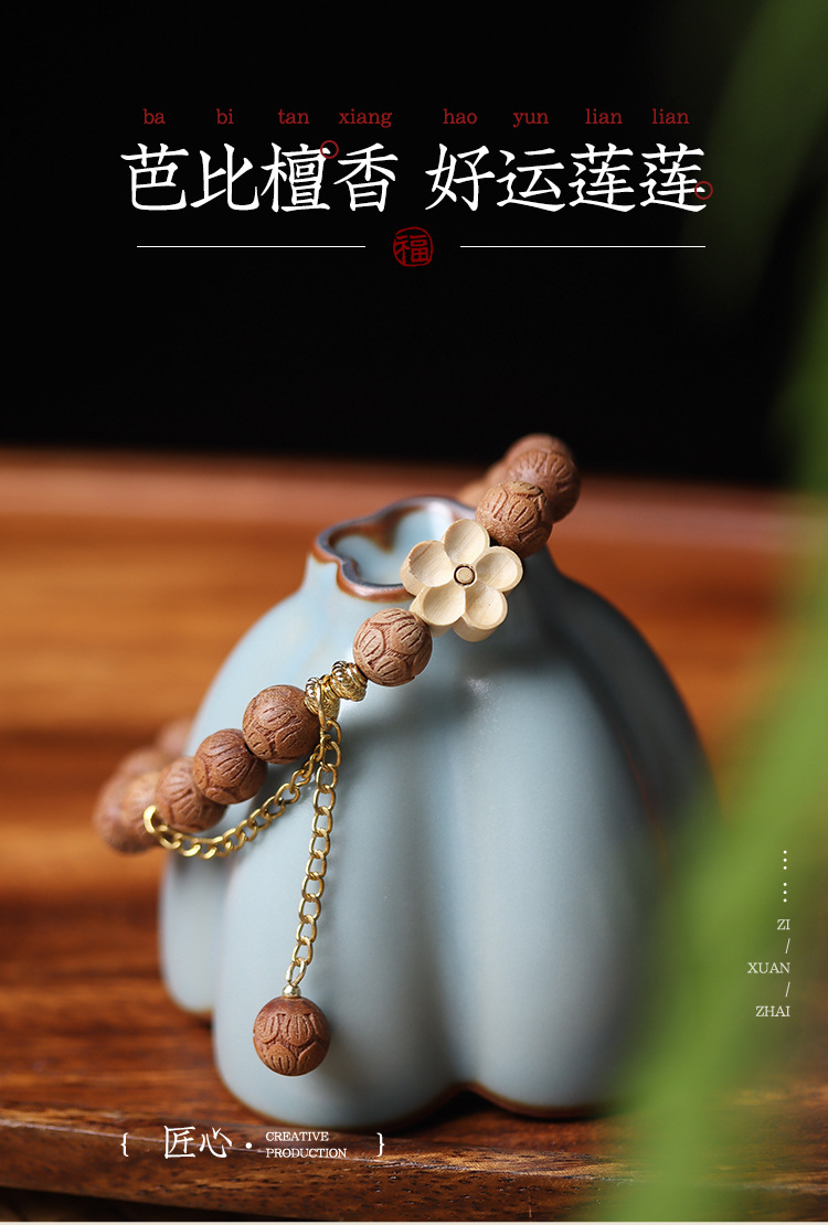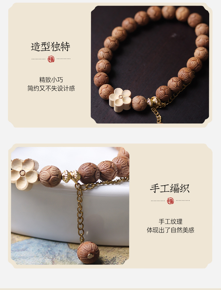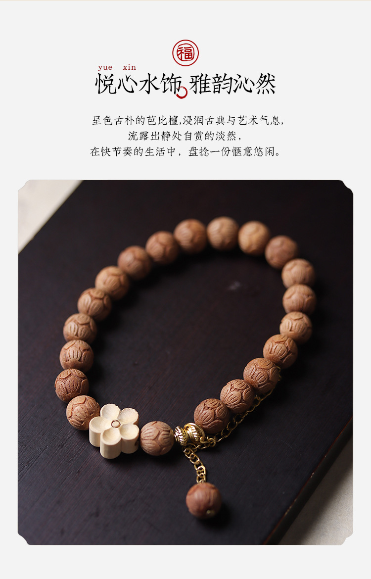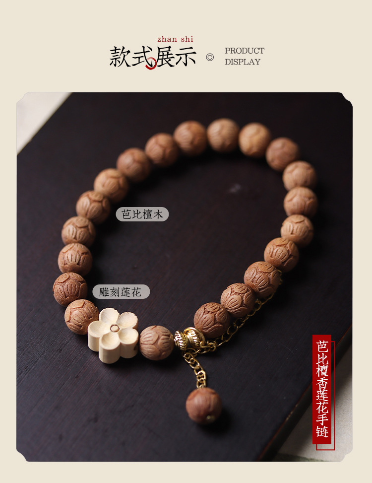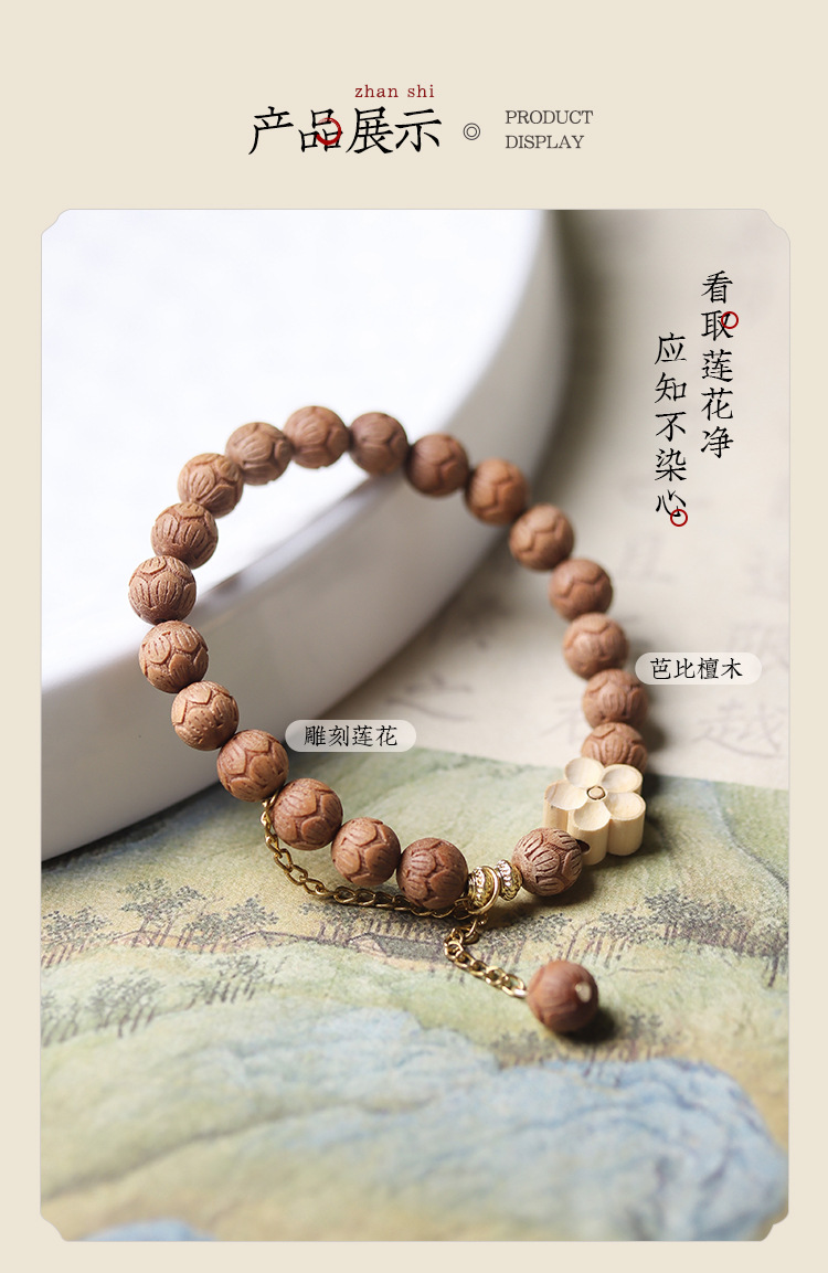 barbie sandalwood carved lotus bracelet (beads: 0.8cm * 20 pcs, shooting product: about 8g)