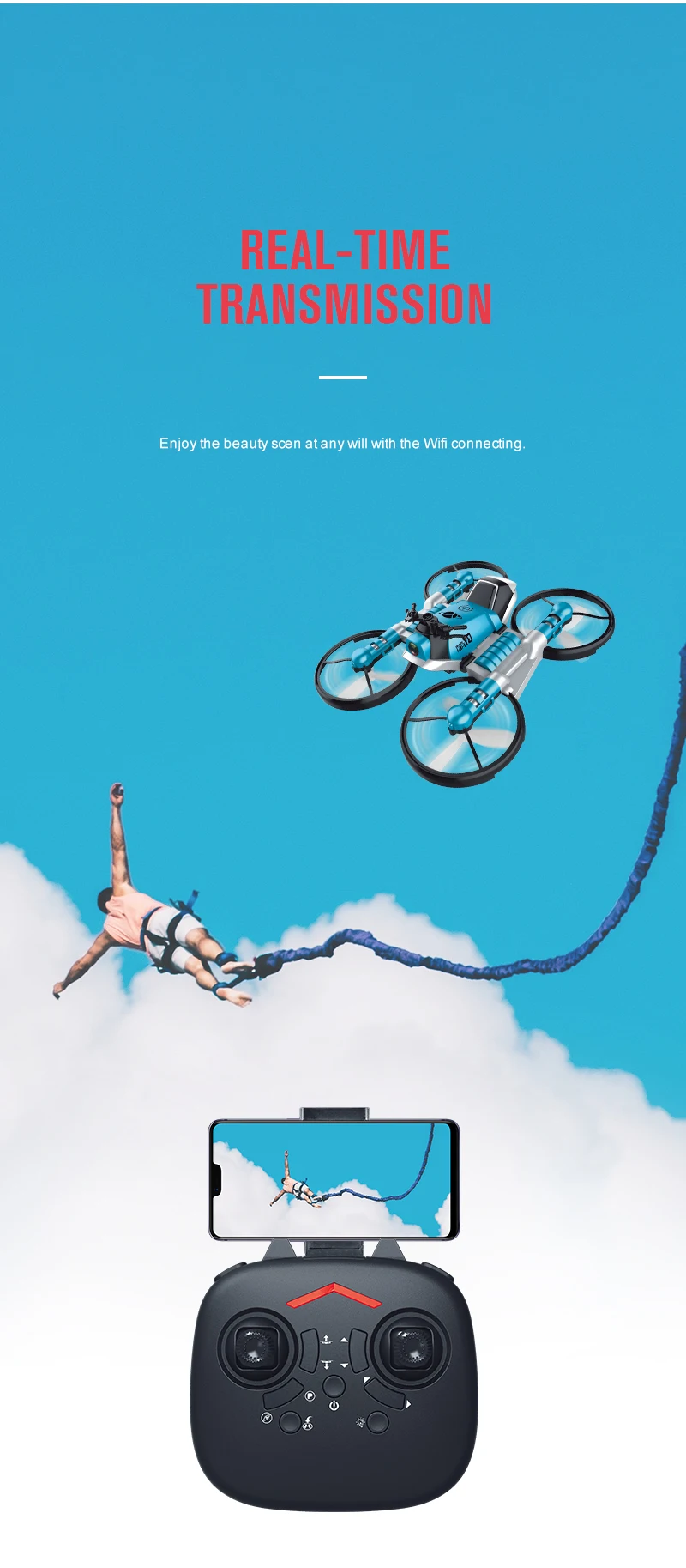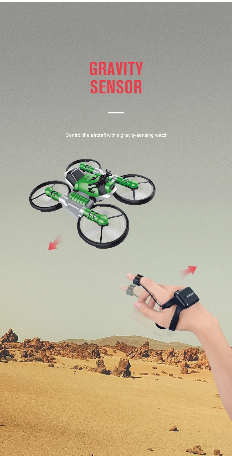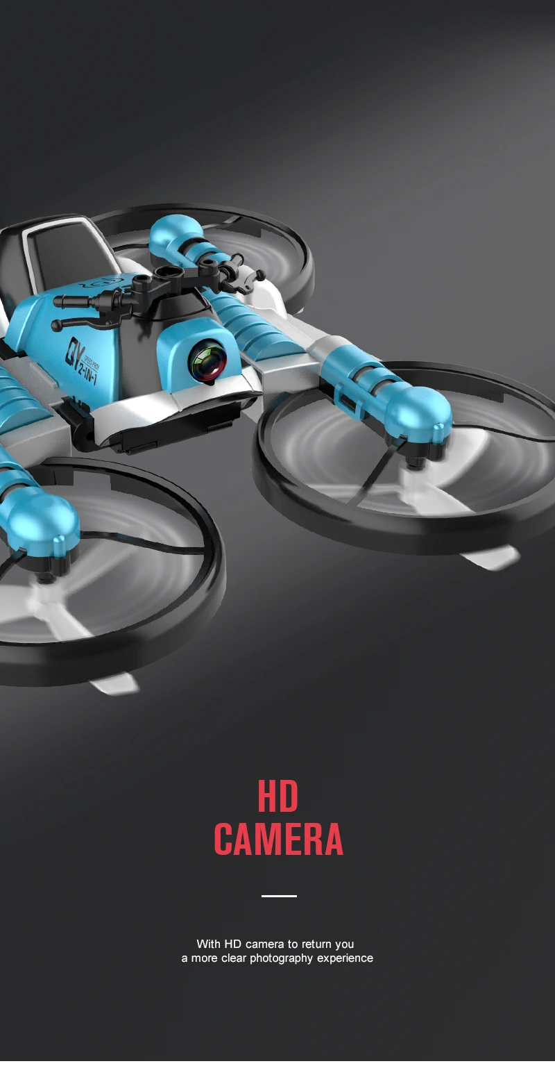 Product Name: | Land travel air flight toy 2 in 1 watch control deformation RC quadcopter drone motorcycle toy with HD camera |