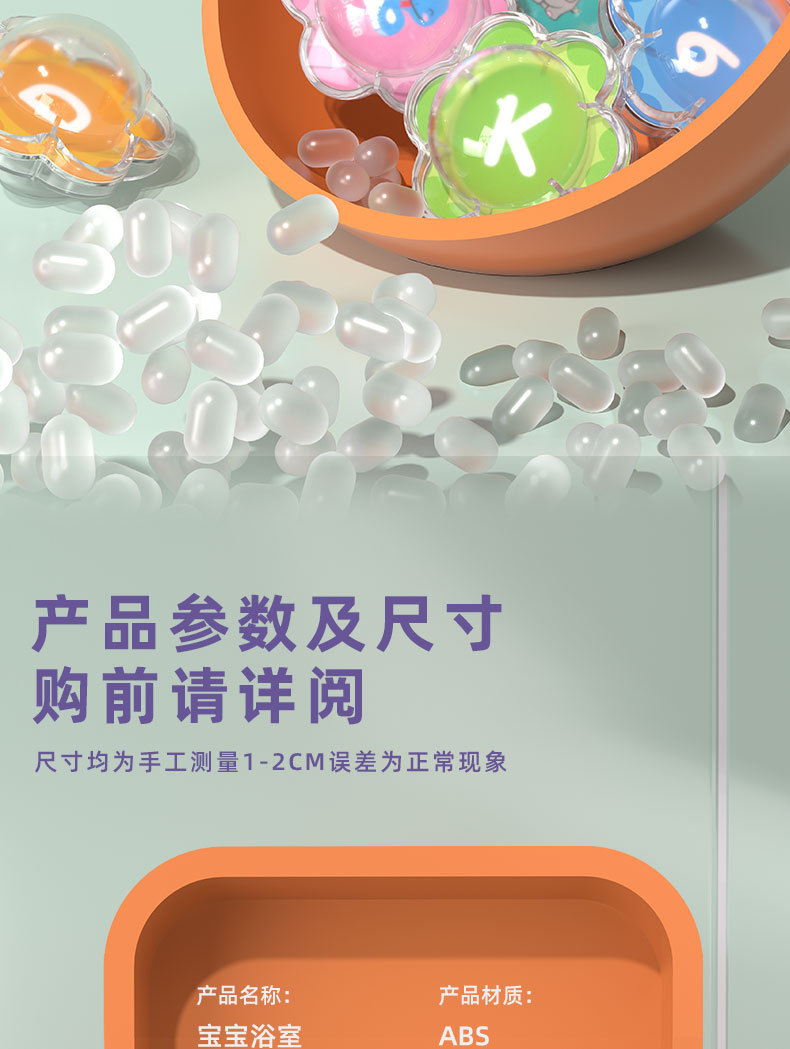 26 floating balls (letters + animals) color box package