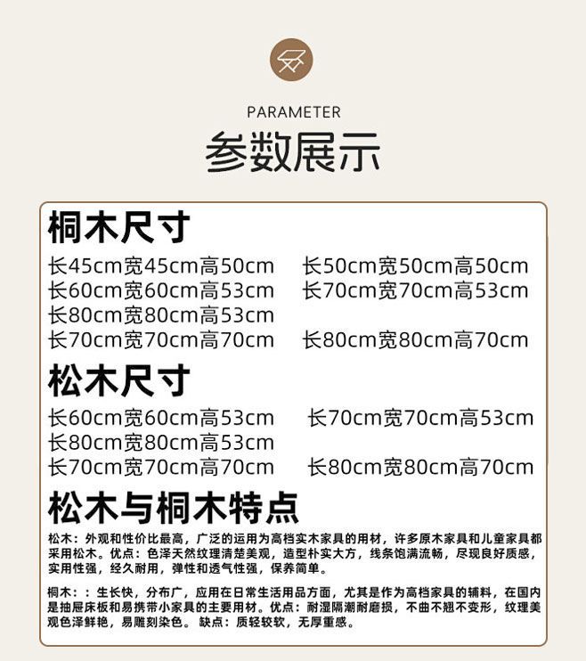 | length, width and height 80*80 * 70cm [paulownia upgrade and reinforcement]] | CN¥ 289.87 | 999999 piece available |