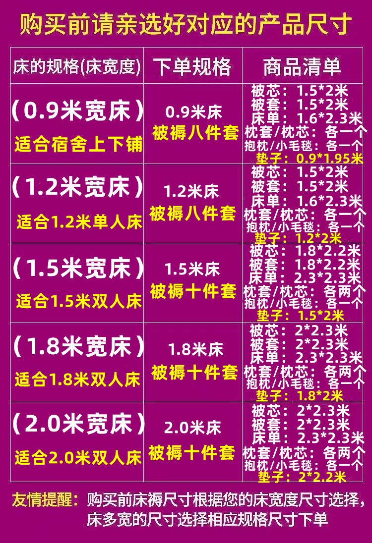 | 2.0 m bed bedding 10 pcs set (4.00kg quilt) | CN¥ 248.4 | 999999 piece available |