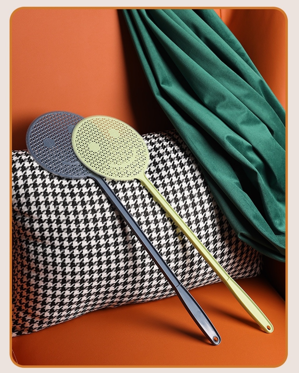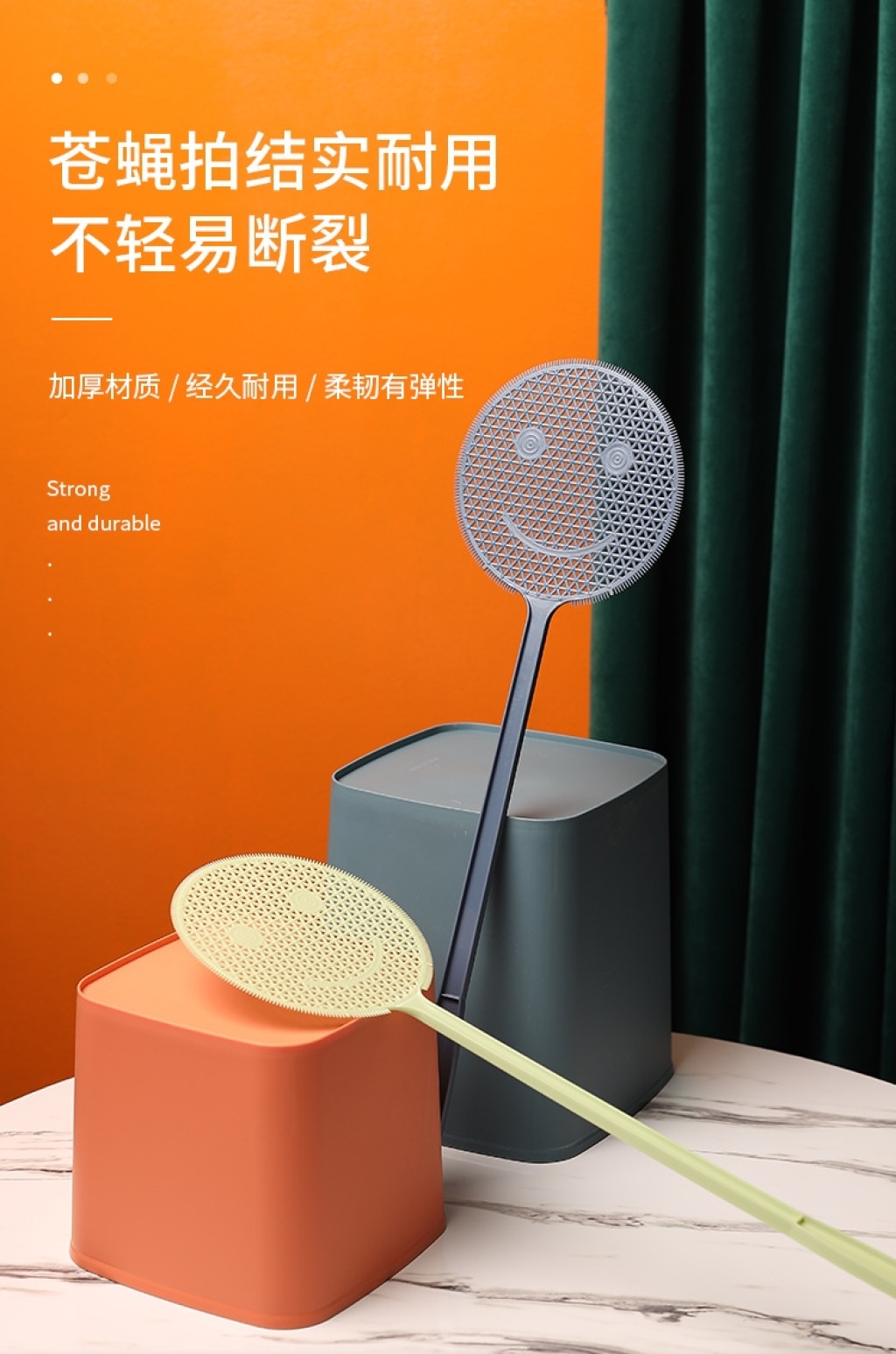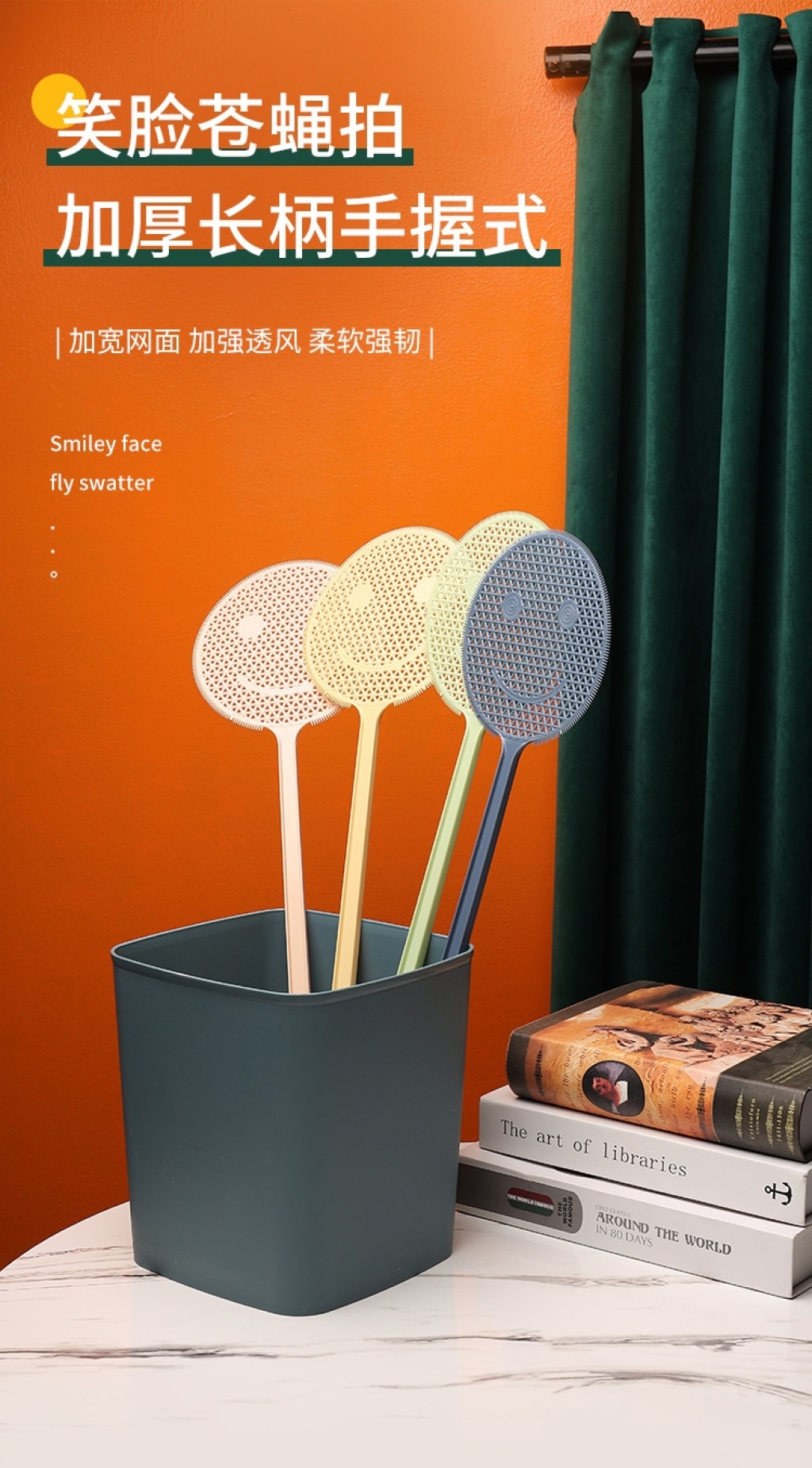 j76-810 swatter non-rotten household thickened long handle swatting flies manual large mosquito hitting smiley face mosquito swatter