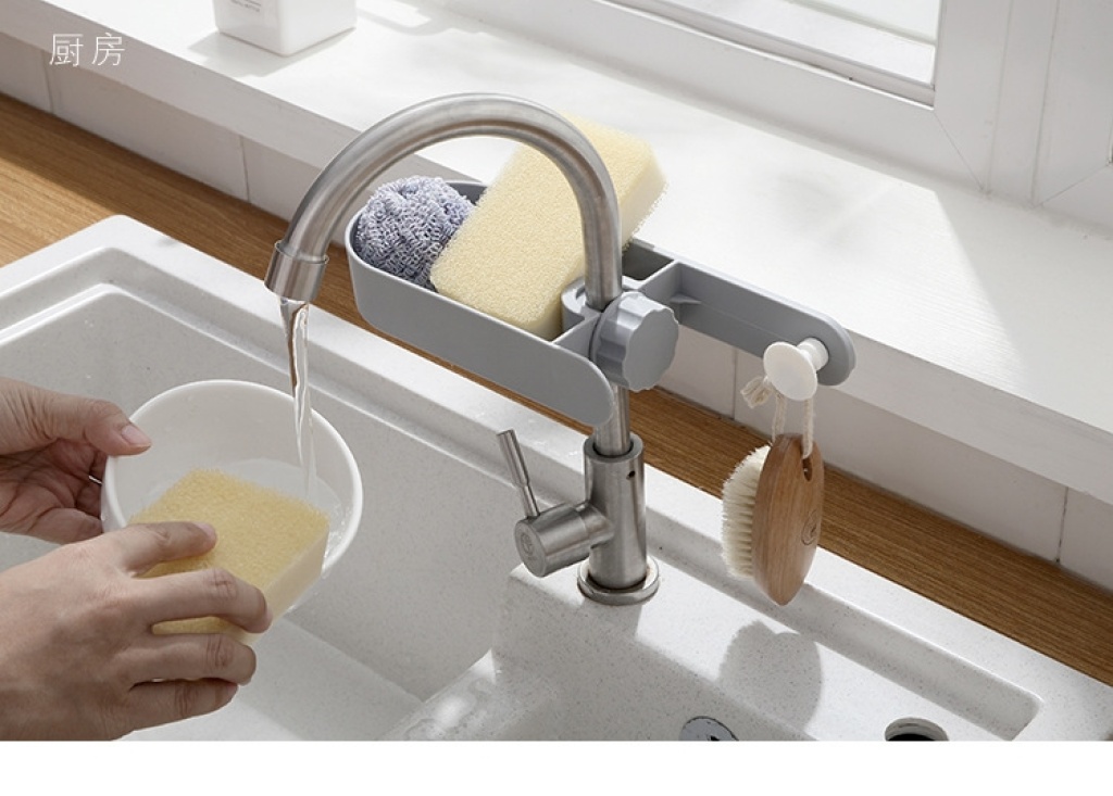 b47-bwa09 dots racks hanging on a faucet kitchen punch-free sponge brush draining rack sink storage shelf