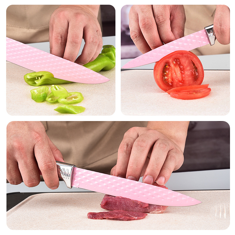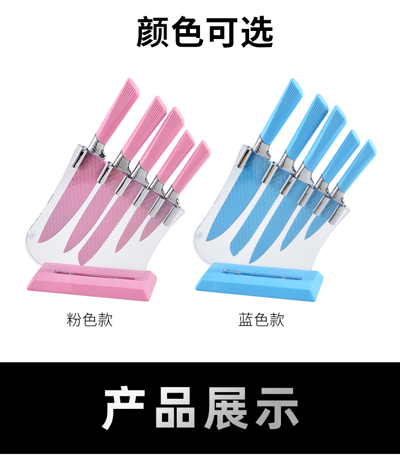 diamond pattern knife seat six-piece set (pink)