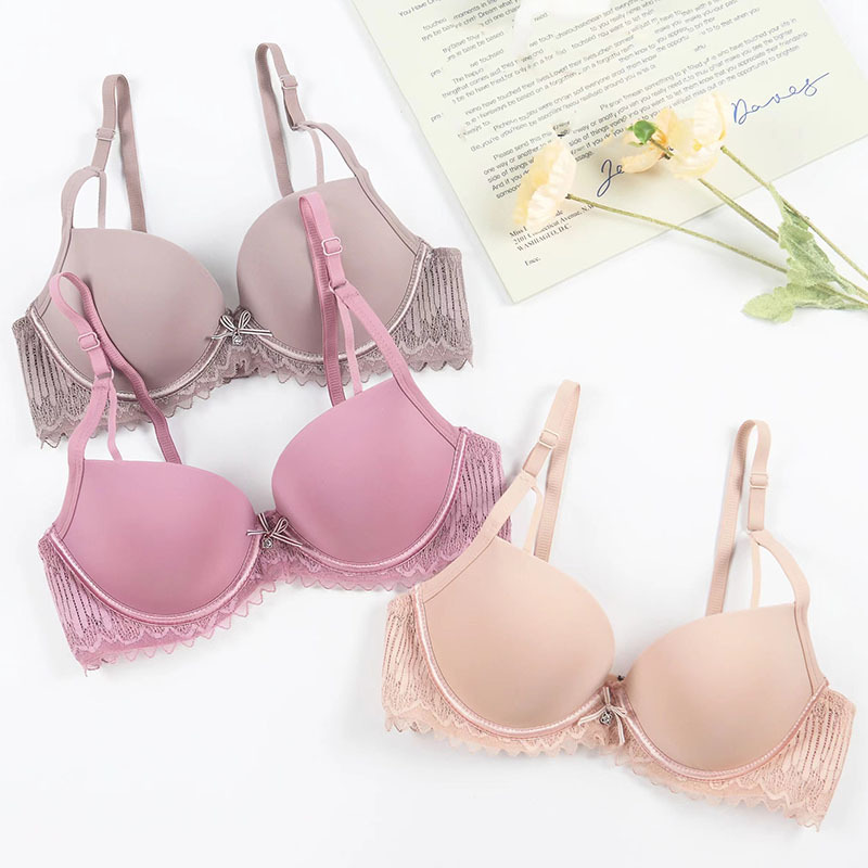 new sexy french lace underwear women's push up comfort adjustable breast holding bra with steel ring upper support