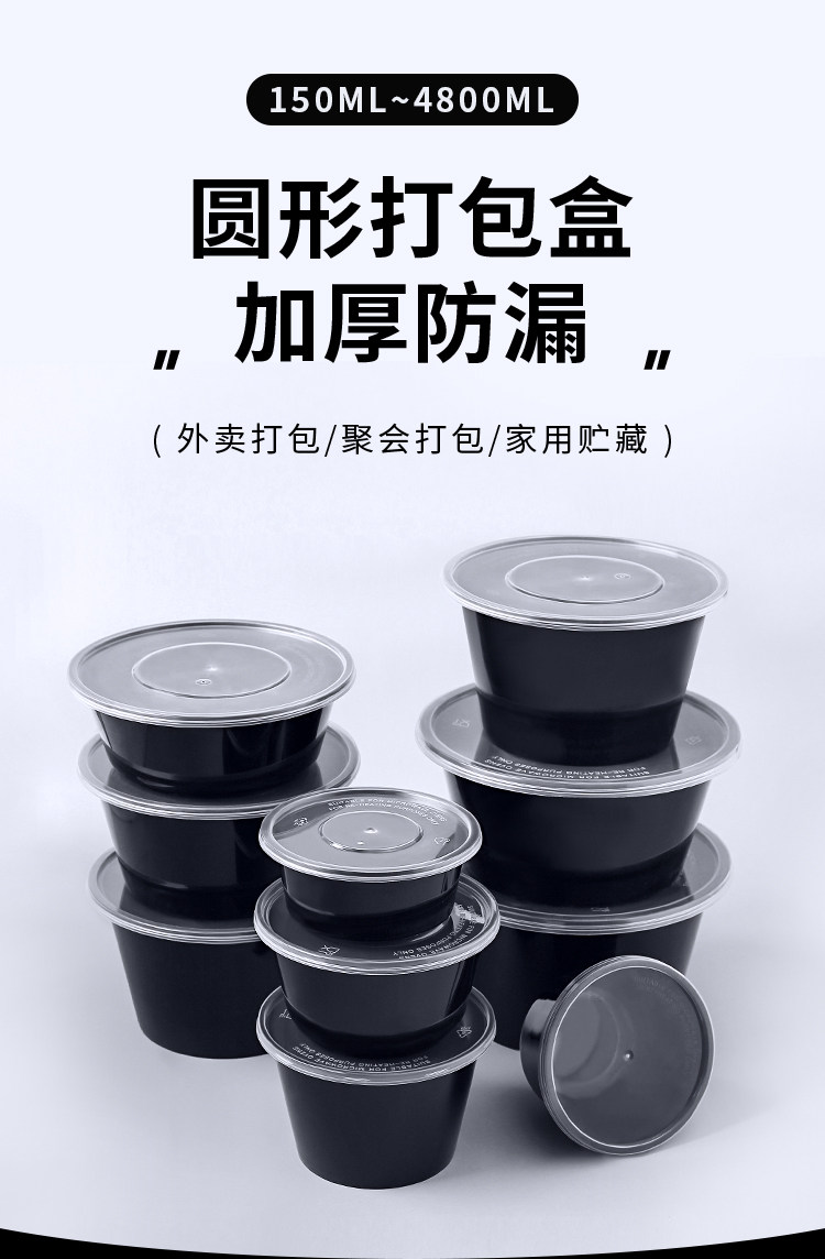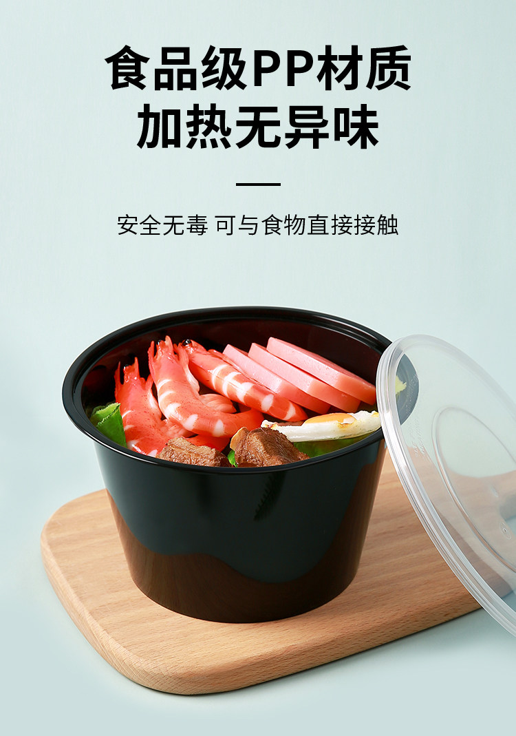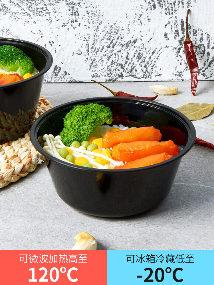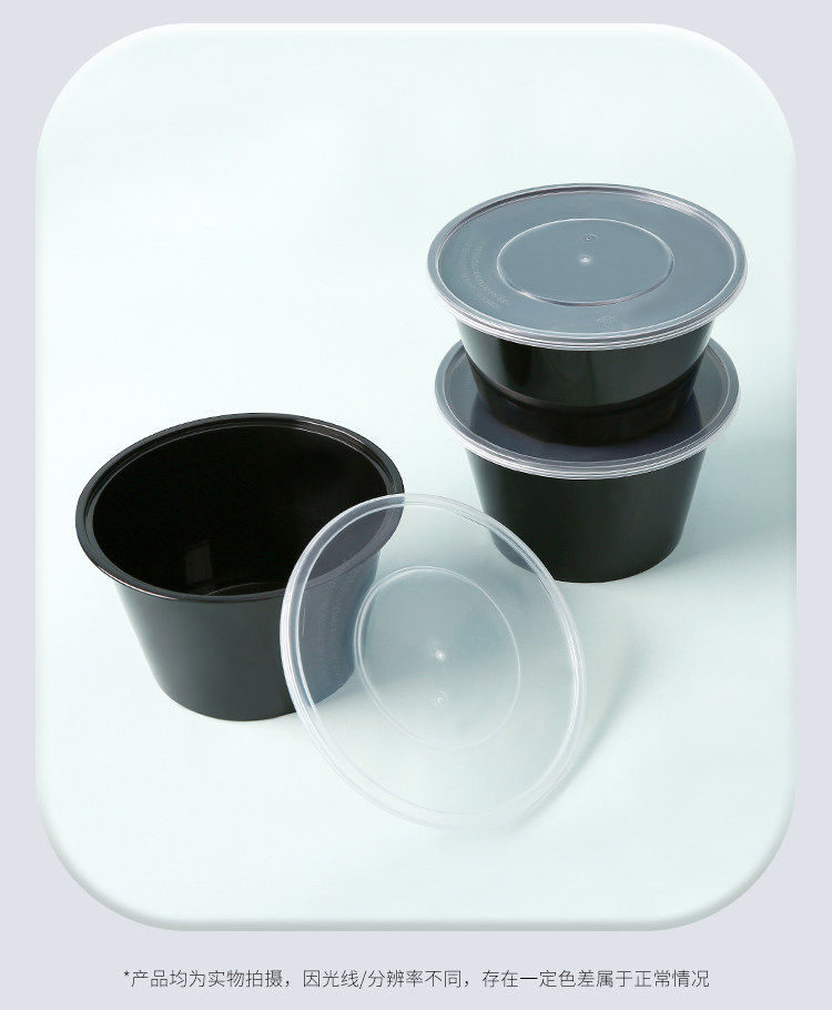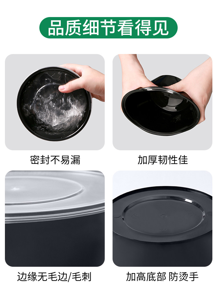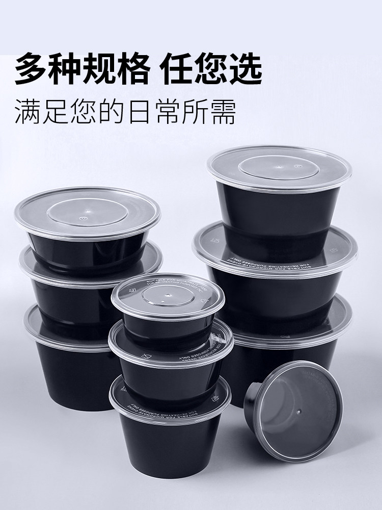round 1000ml disposable lunch box black takeaway packing box commercial thickened soup bowl fast food box bento lunch box