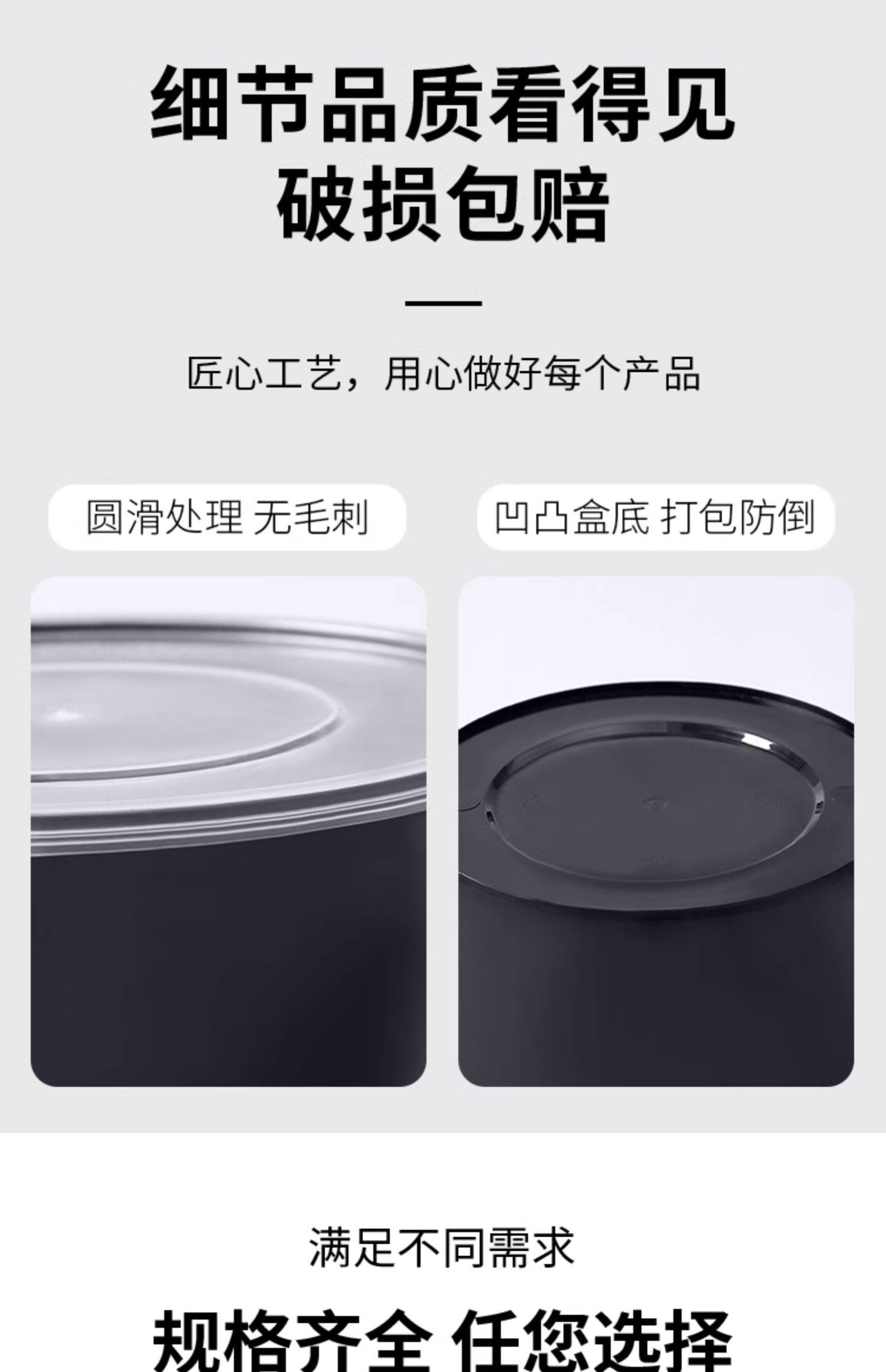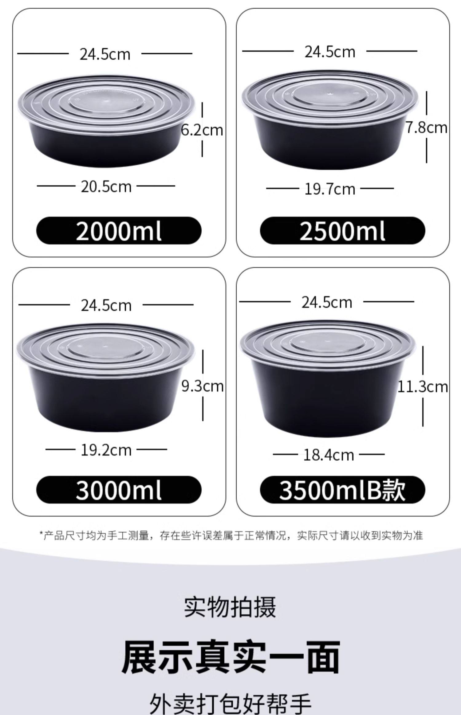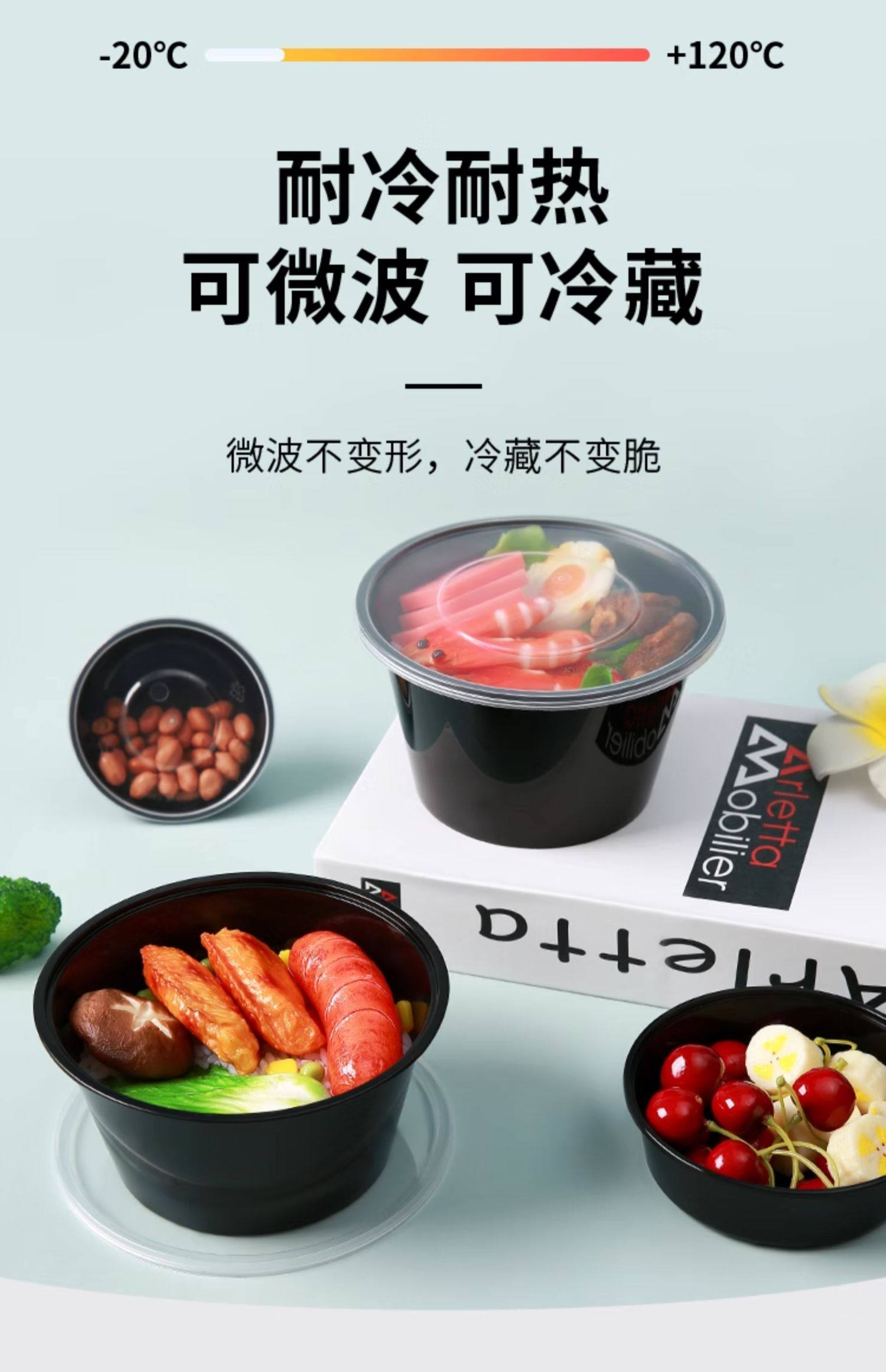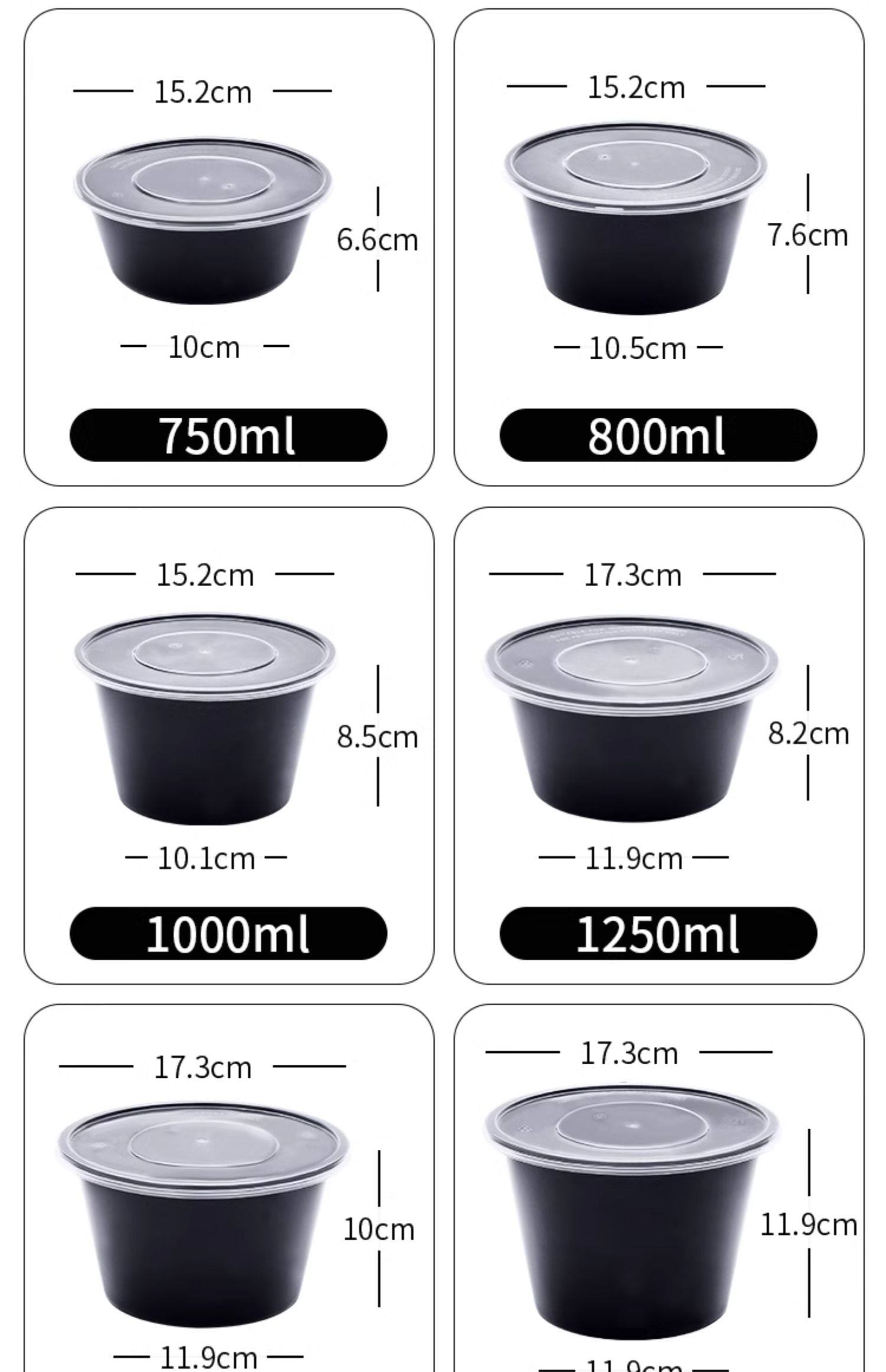 round 1000ml disposable lunch box black takeaway packing box commercial thickened soup bowl fast food box bento lunch box