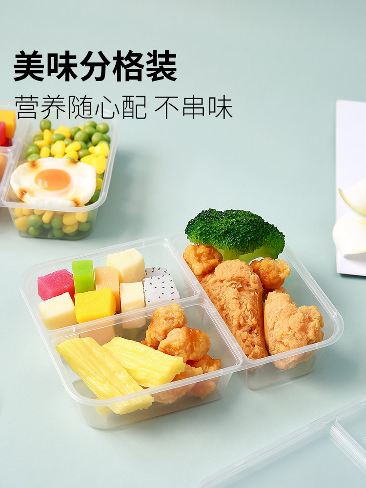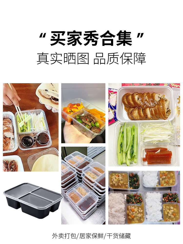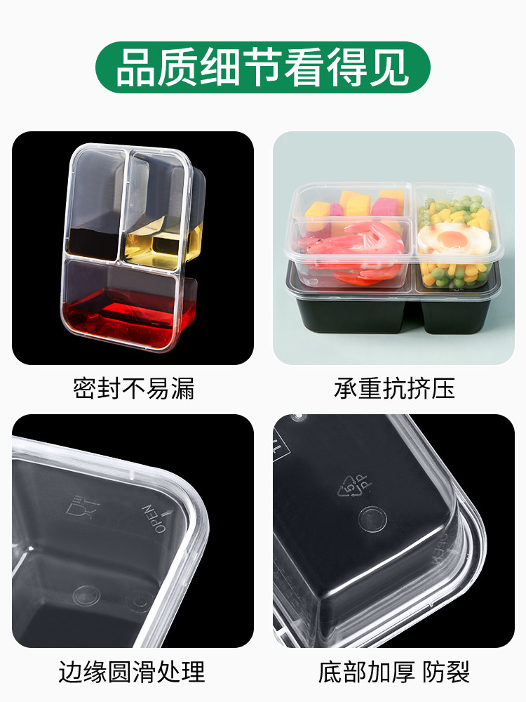 500/650/750ml three-grid rectangular lunch box disposable take out take away lunch box black transparent fast food box