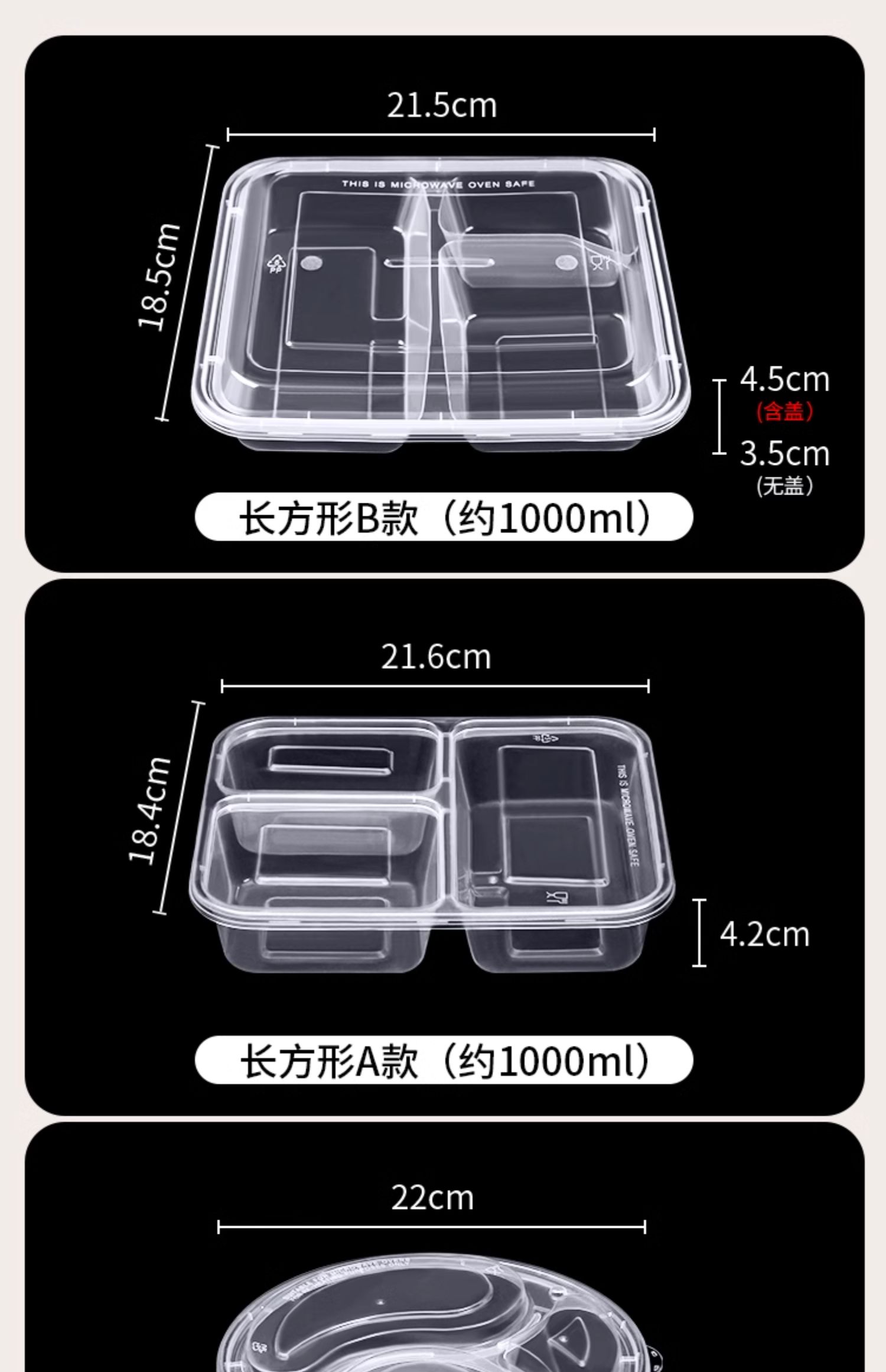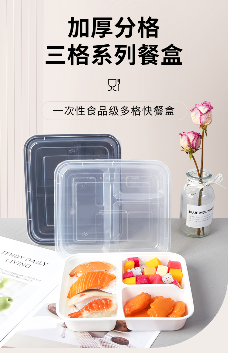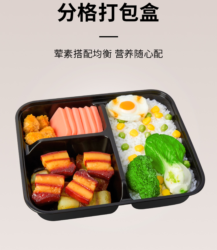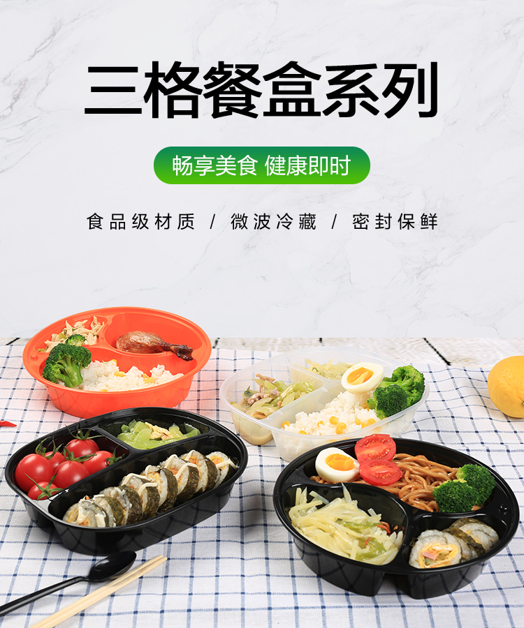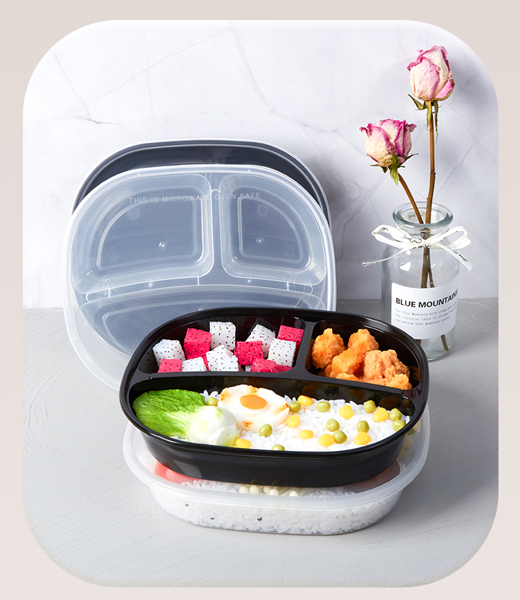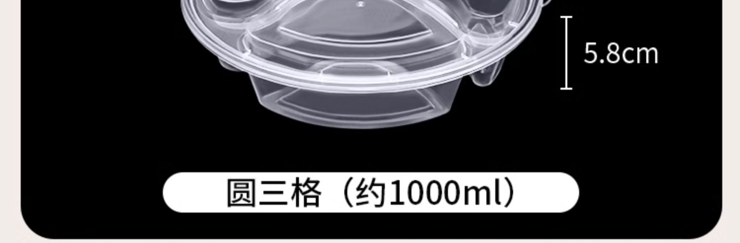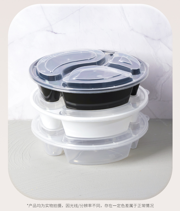 black transparent three grids and four grids five-grid round bento fast food box take out take away disposable lunch box white plate 中文版