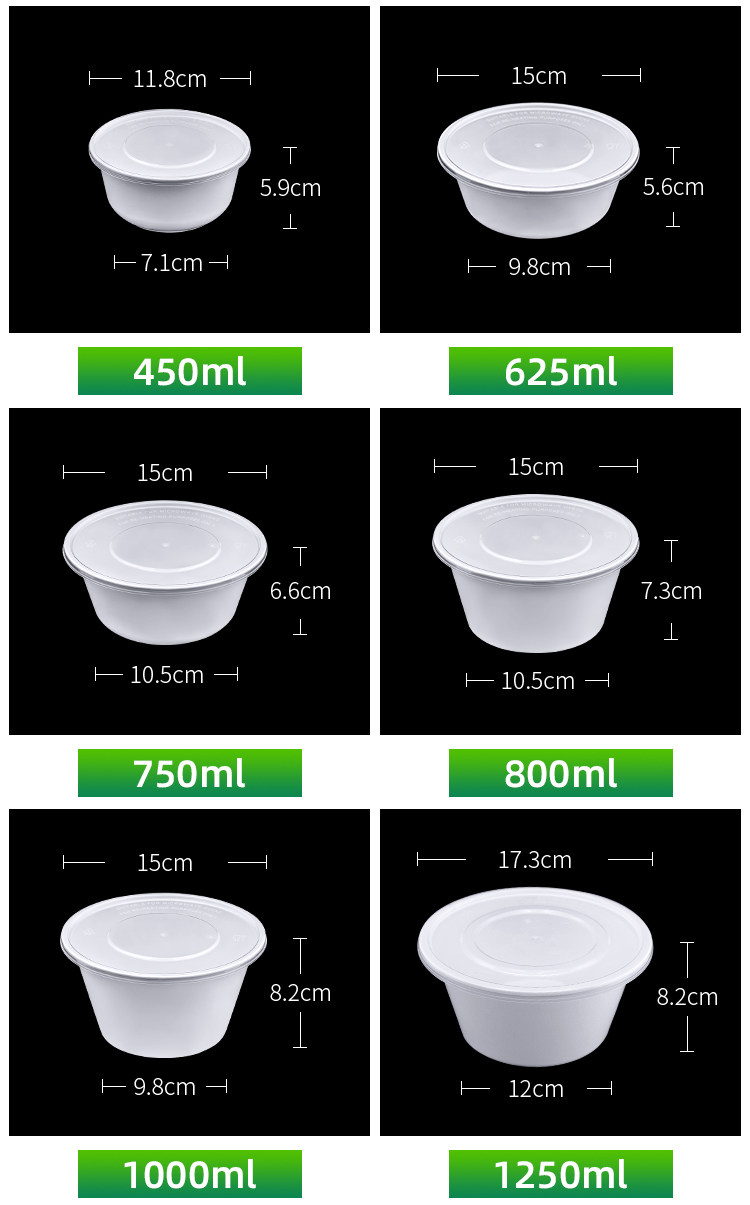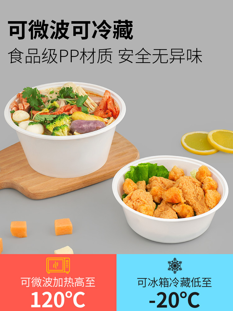1000ml milky white disposable lunch box round takeaway packing box thickened fast food box bento lunch box soup bowl with lid