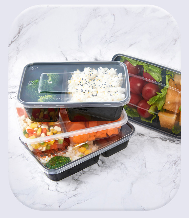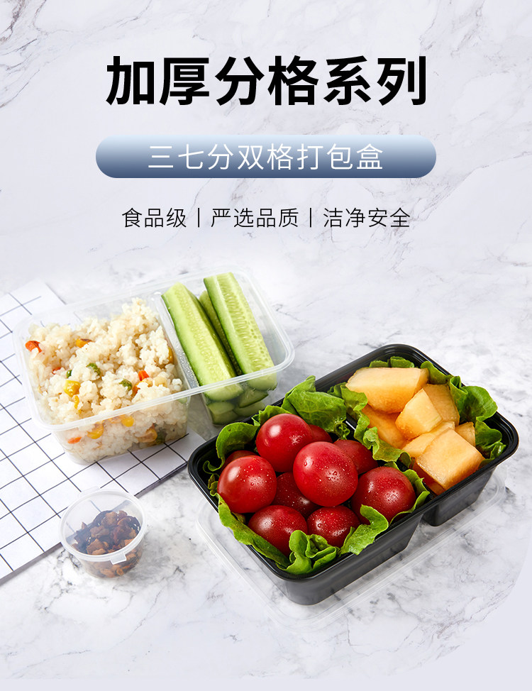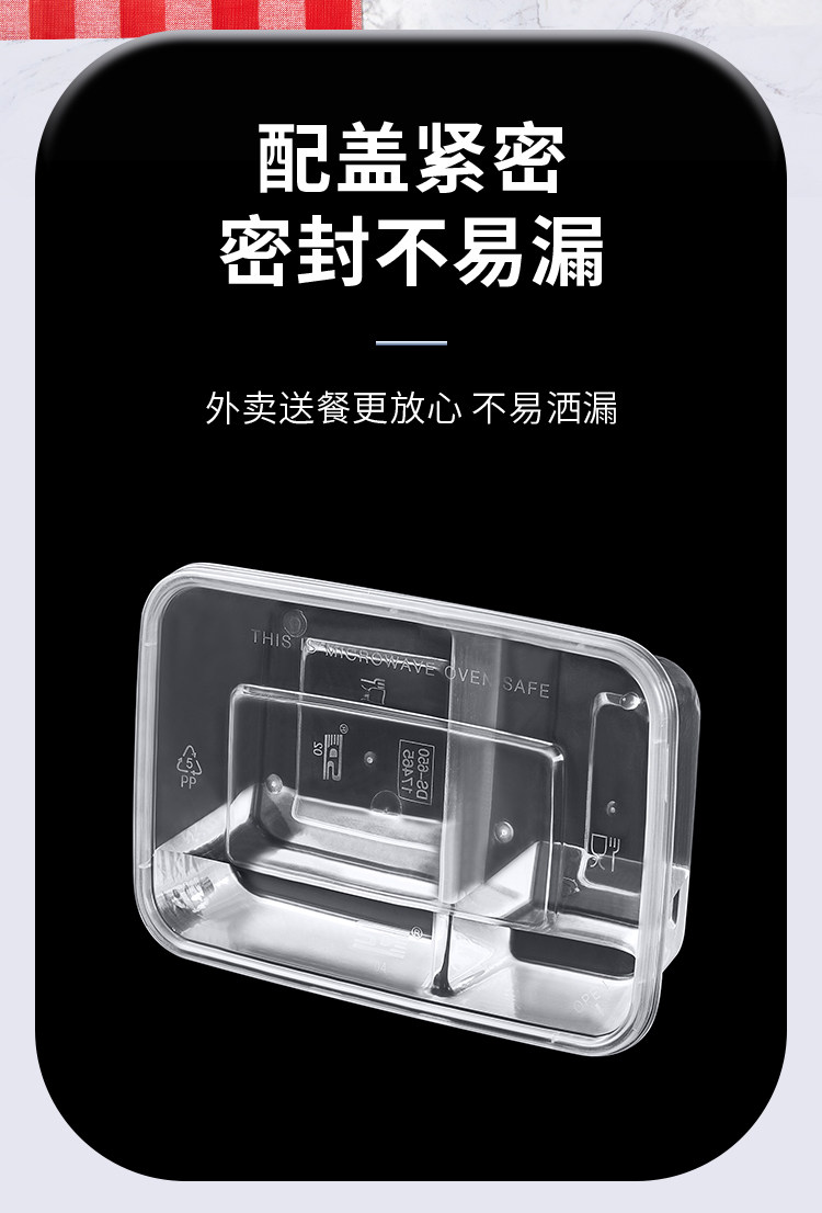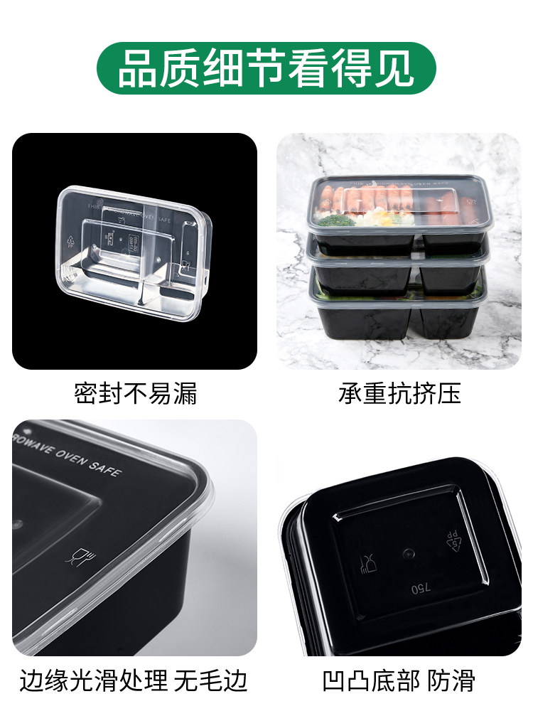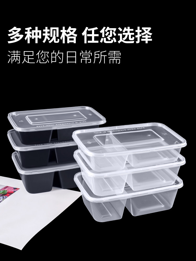 500/650/750ml sanqi split double grid disposable takeaway packing box transparent black 37 split two grid lunch box