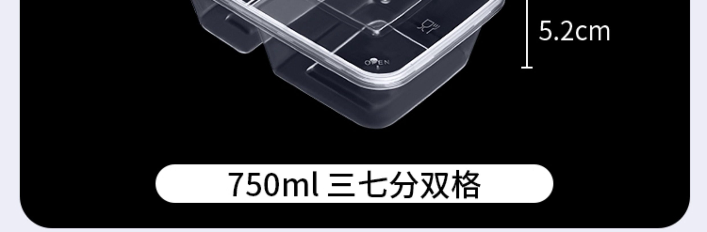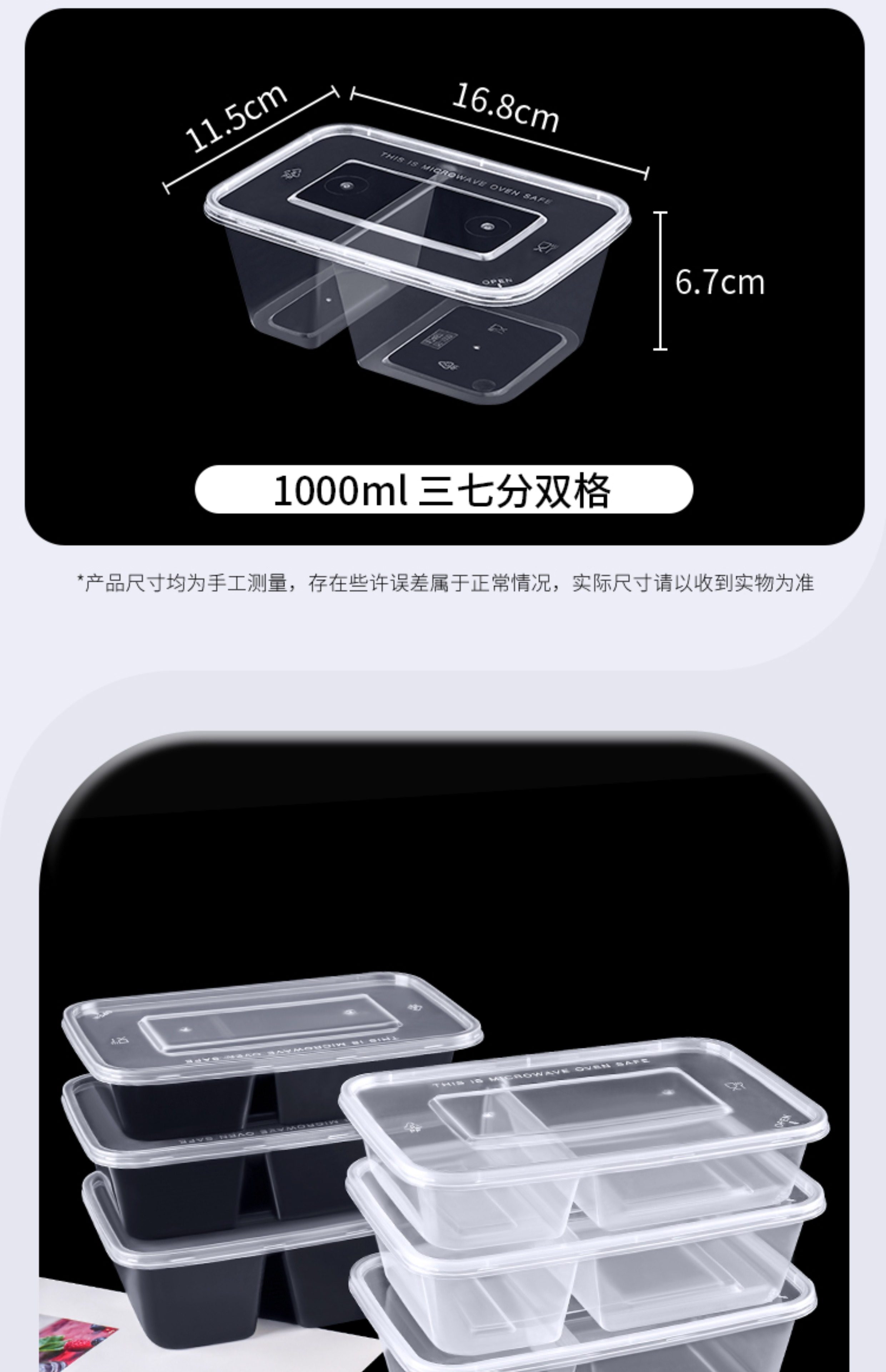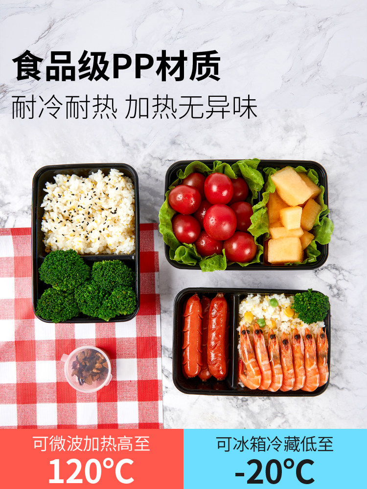 500/650/750ml sanqi split double grid disposable takeaway packing box transparent black 37 split two grid lunch box