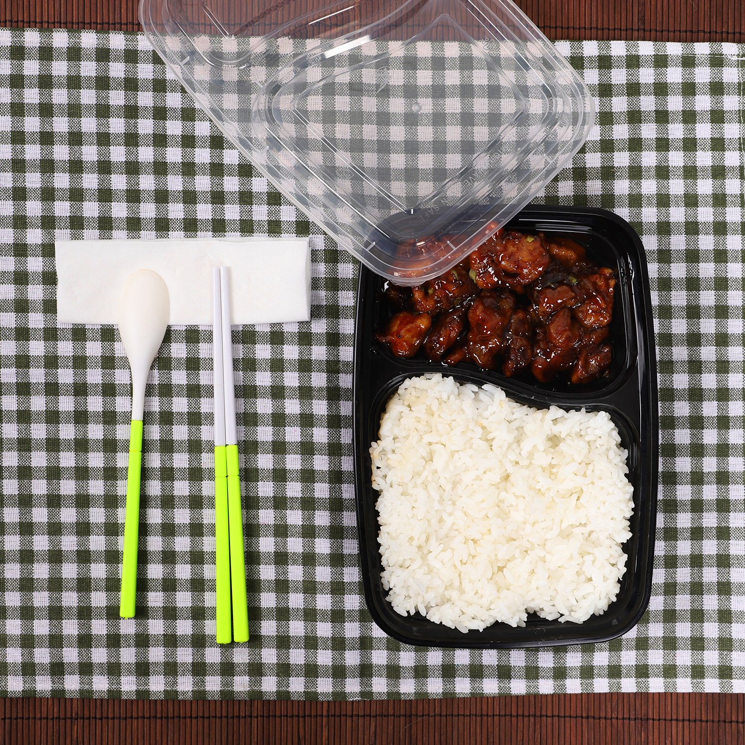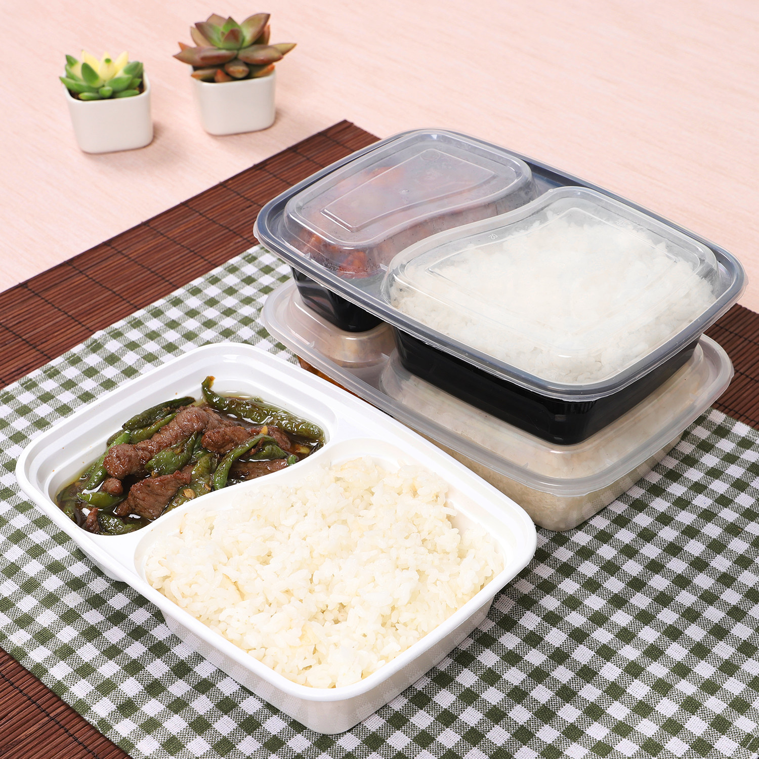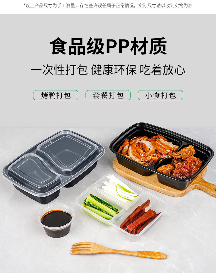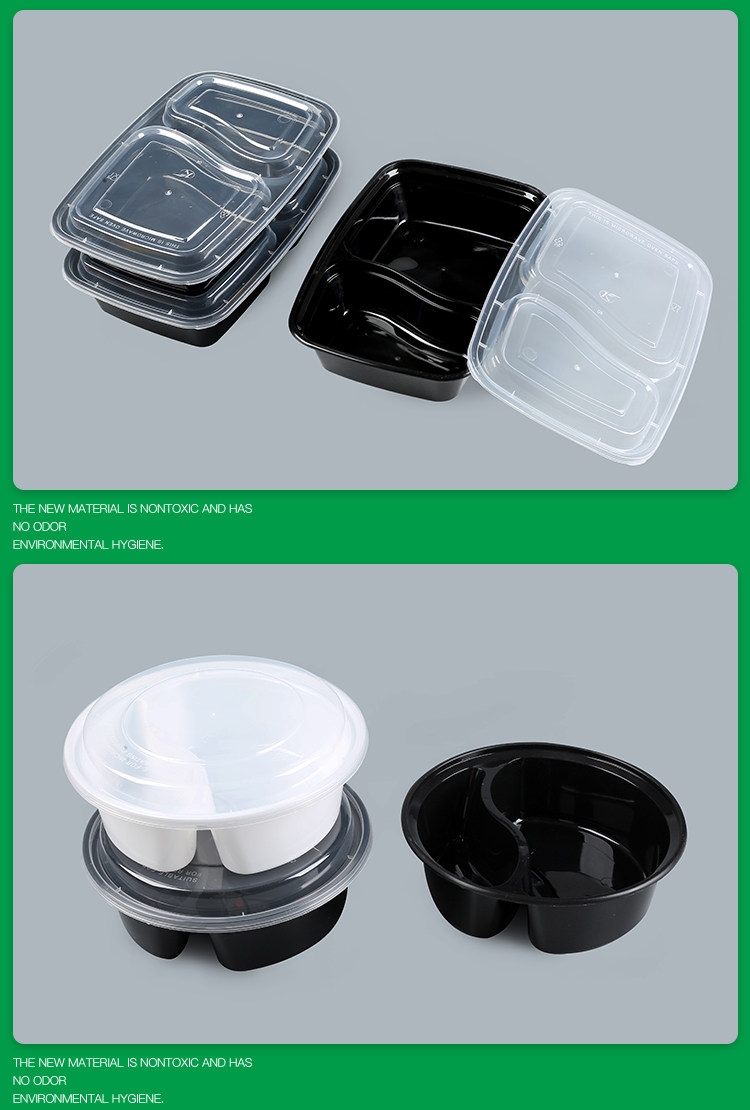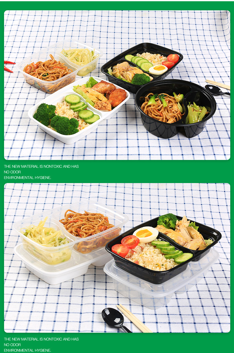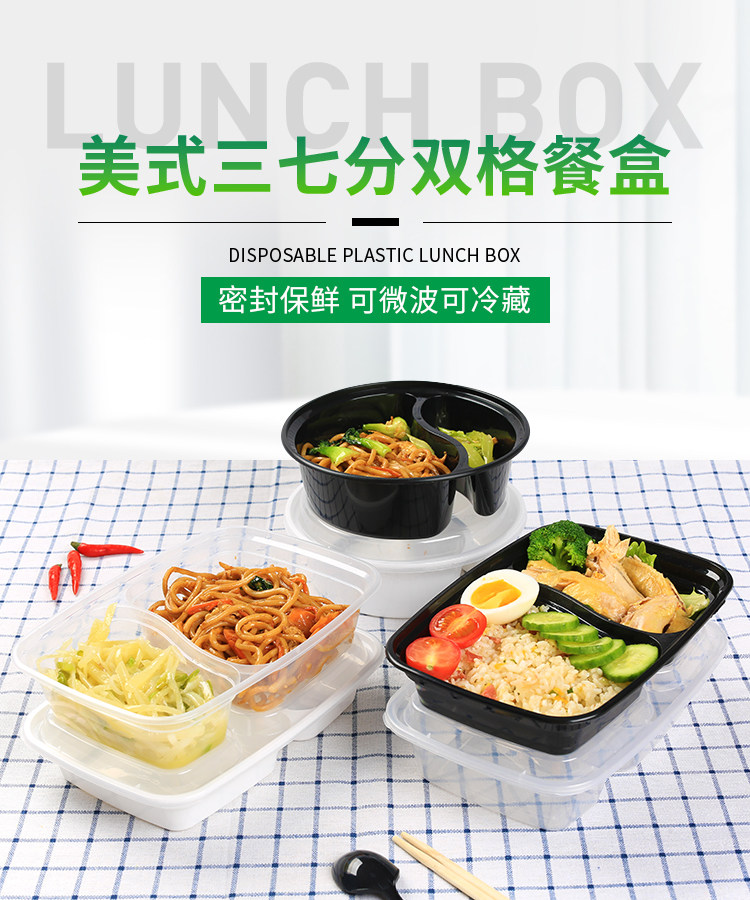 1000ml american double grid disposable lunch box black takeaway packing box 6828 pseudo-ginseng divided lunch box white transparent