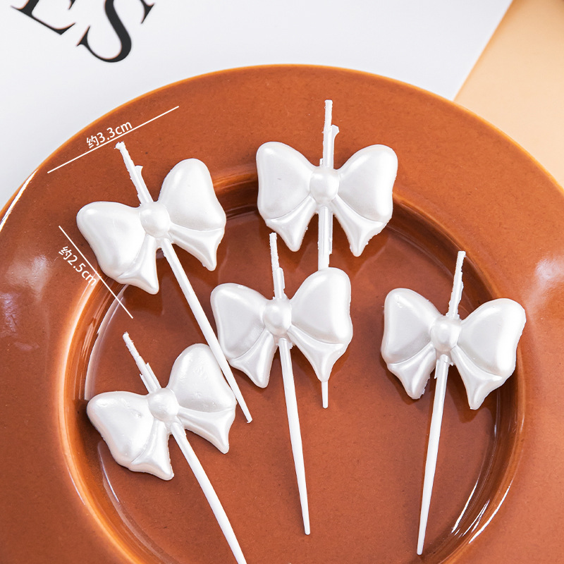 ins korean style pearl white bow candle cake decoration cute little fairy birthday party dress up plug-in