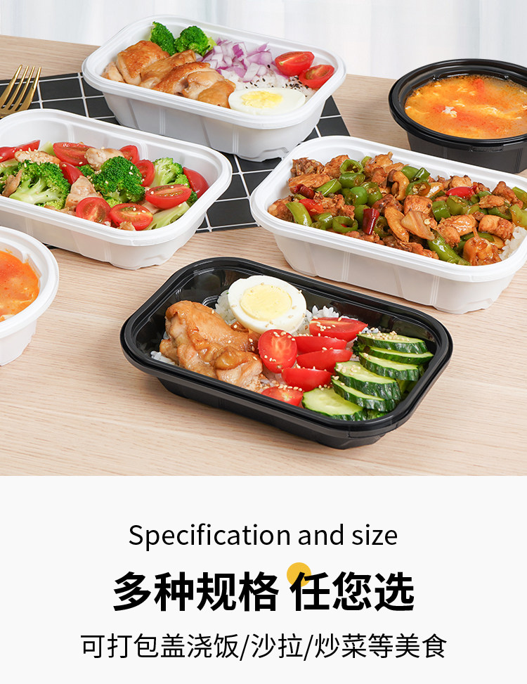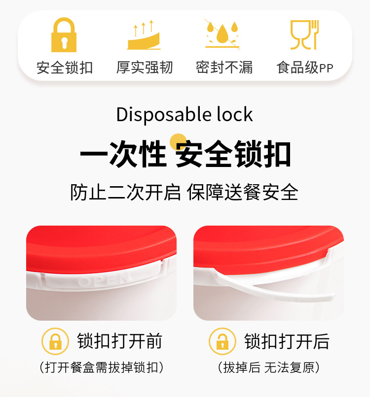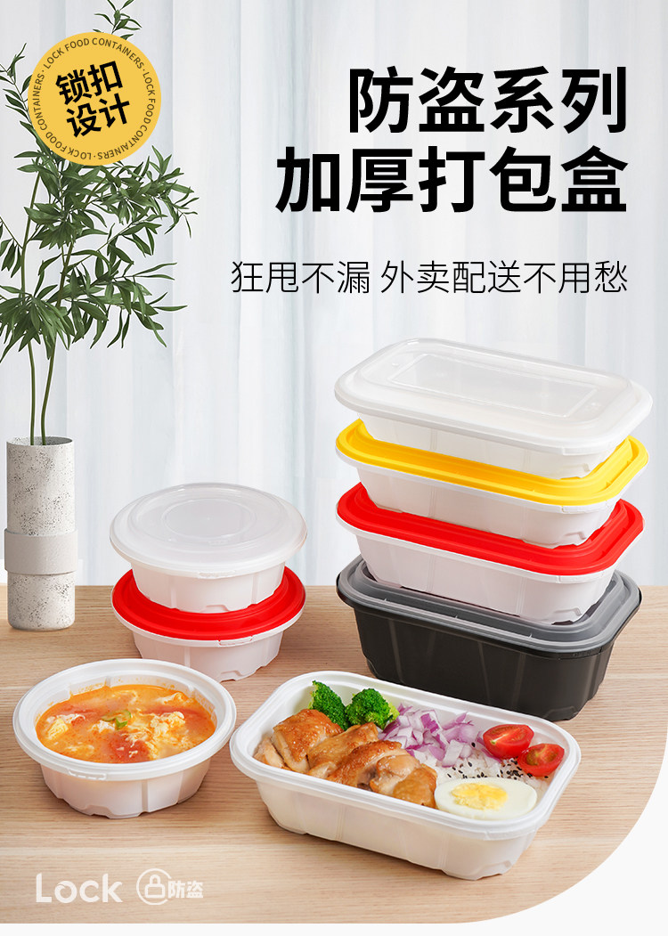 disposable anti-theft lock takeaway packing box rectangular light food pasta fried rice high-end bento fast food box commercial