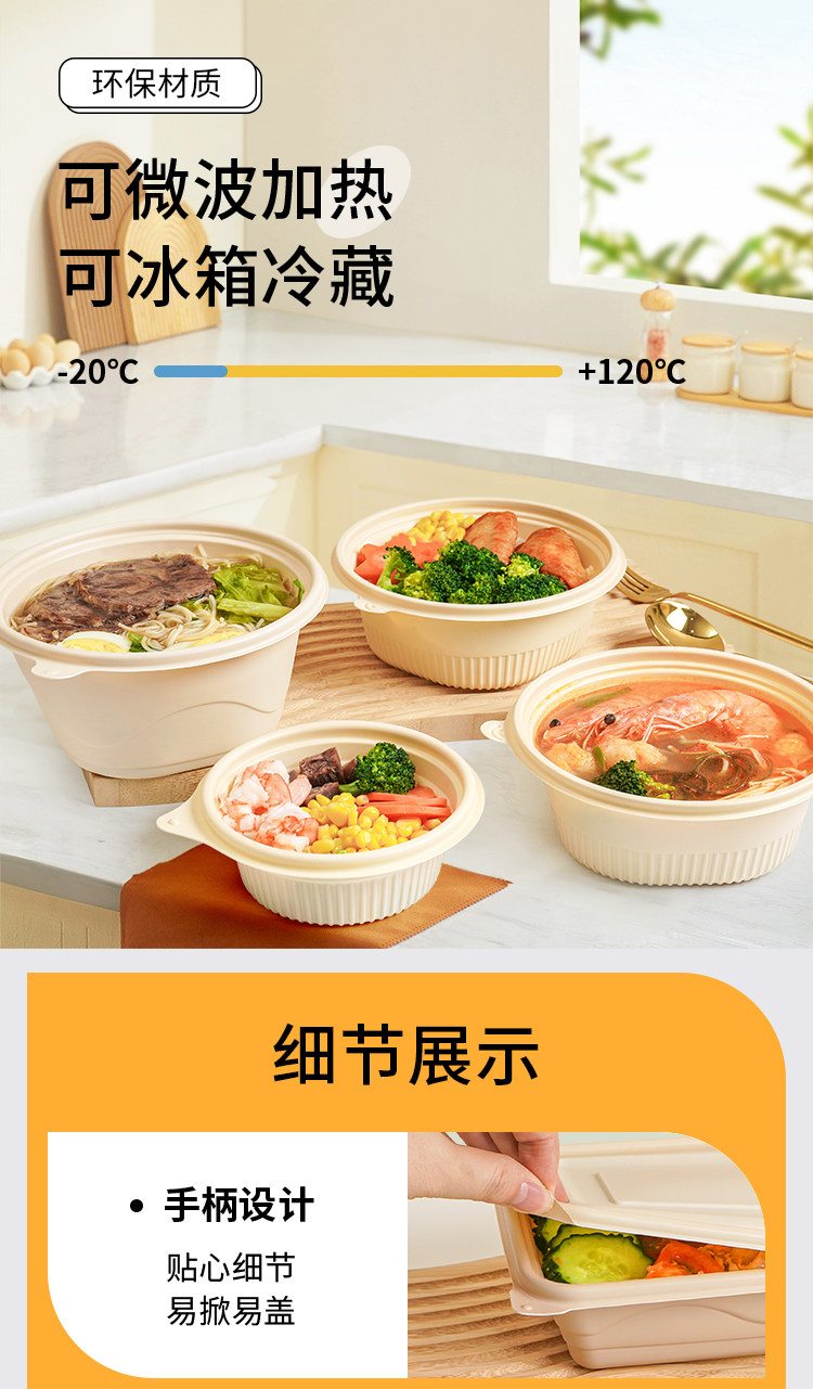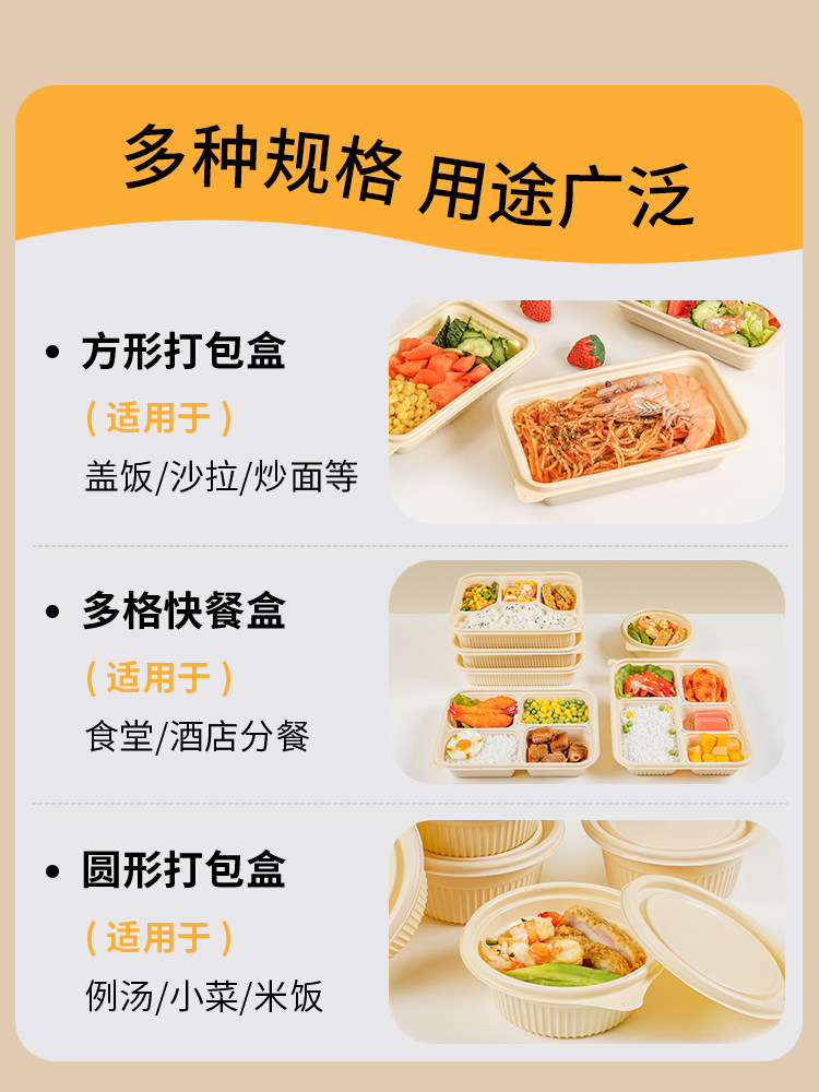 biodegradable disposable lunch box corn starch takeaway packing box round bowl rectangular four-grid five-grid fast food lunch box