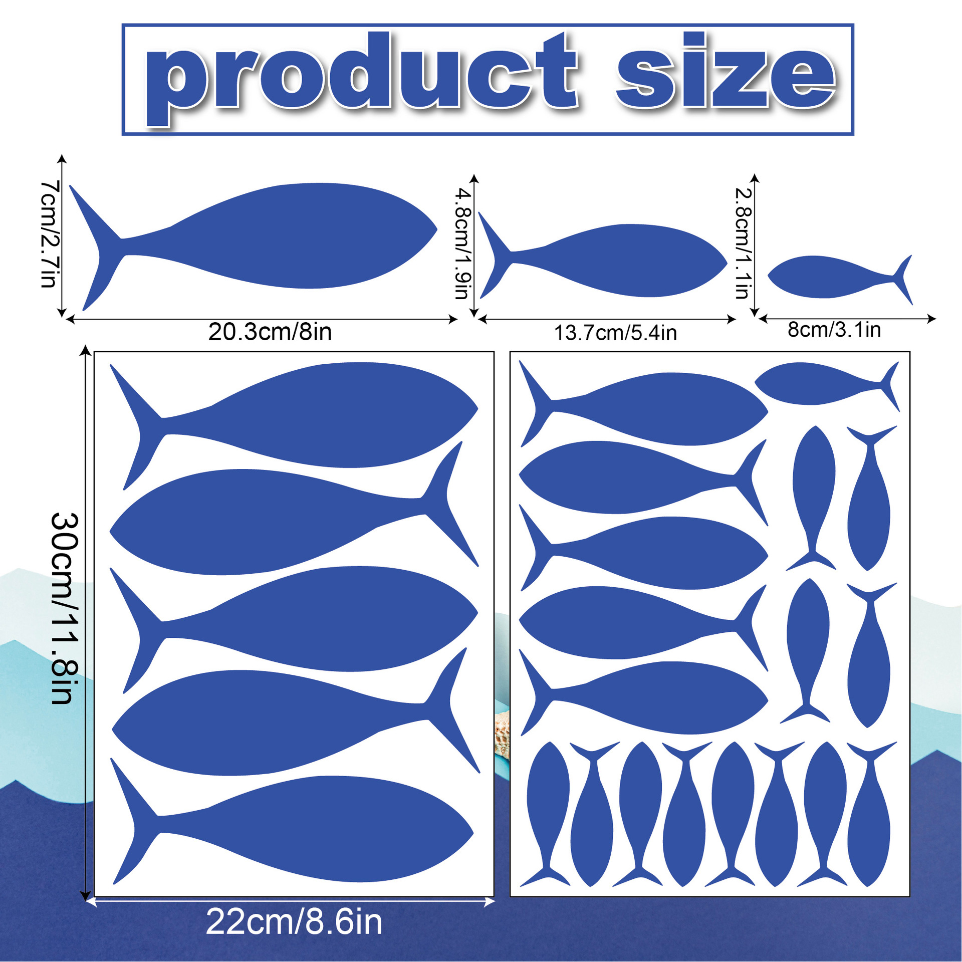 blue fish group wall stickers