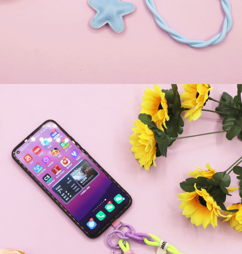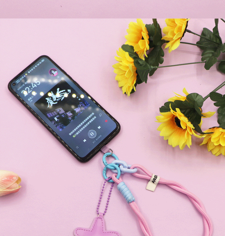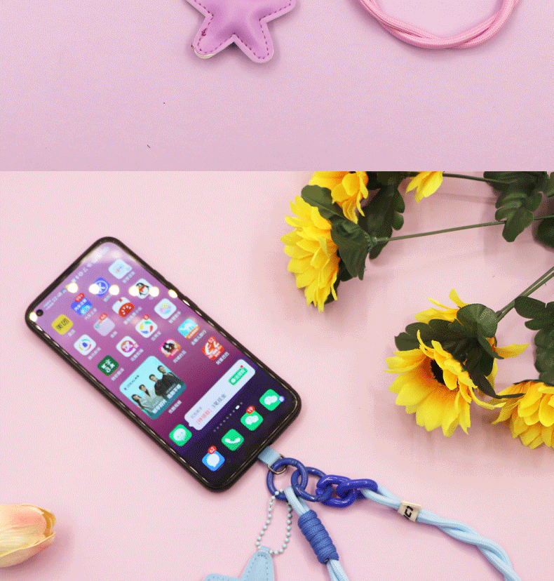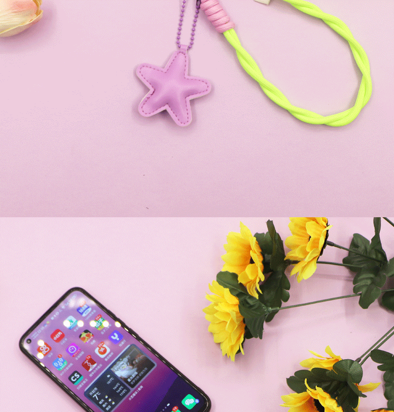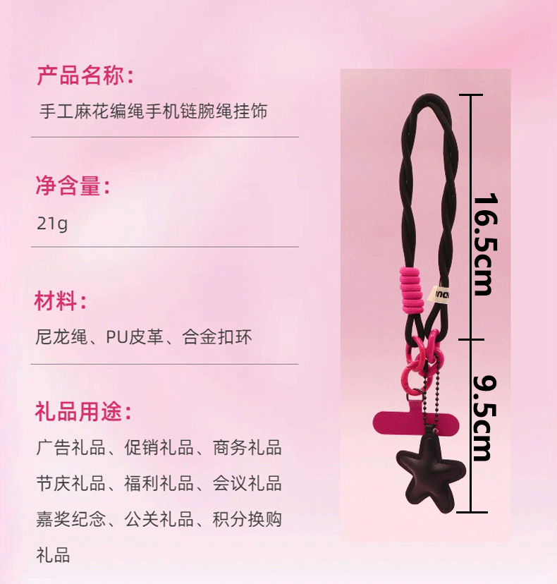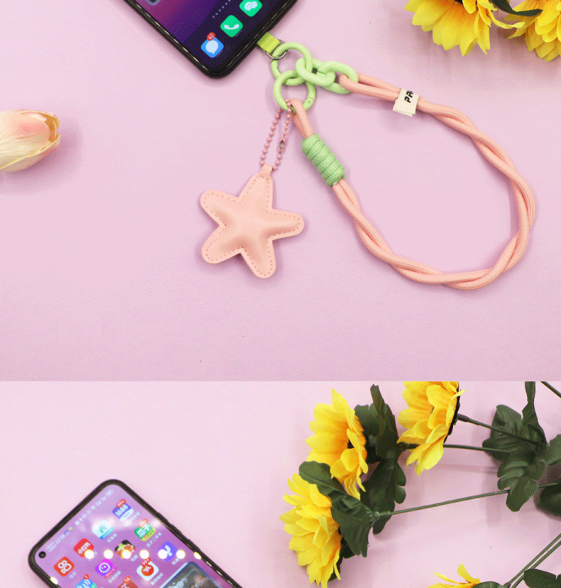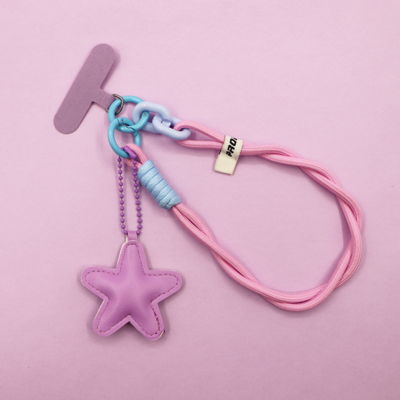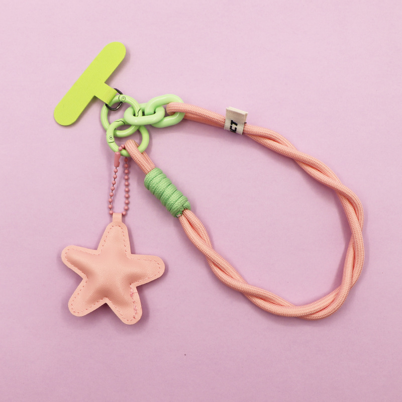 pink [twist braid rope + pu five-star ornaments] mobile phone charm patch wrist rope